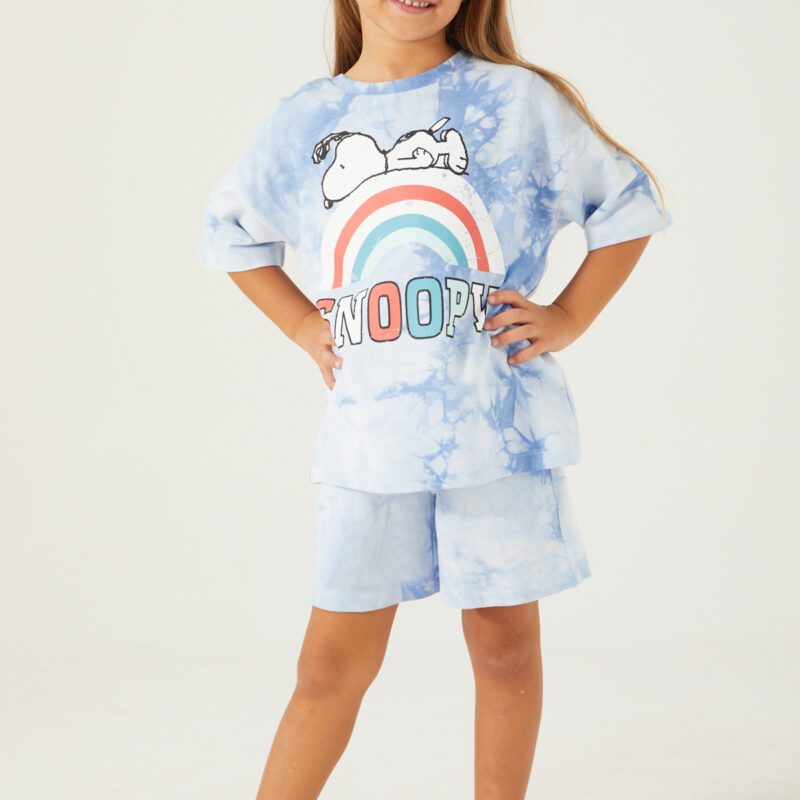 L1574 طقم شورت للفتيات قطن سنوبي لون ازرق سماوي