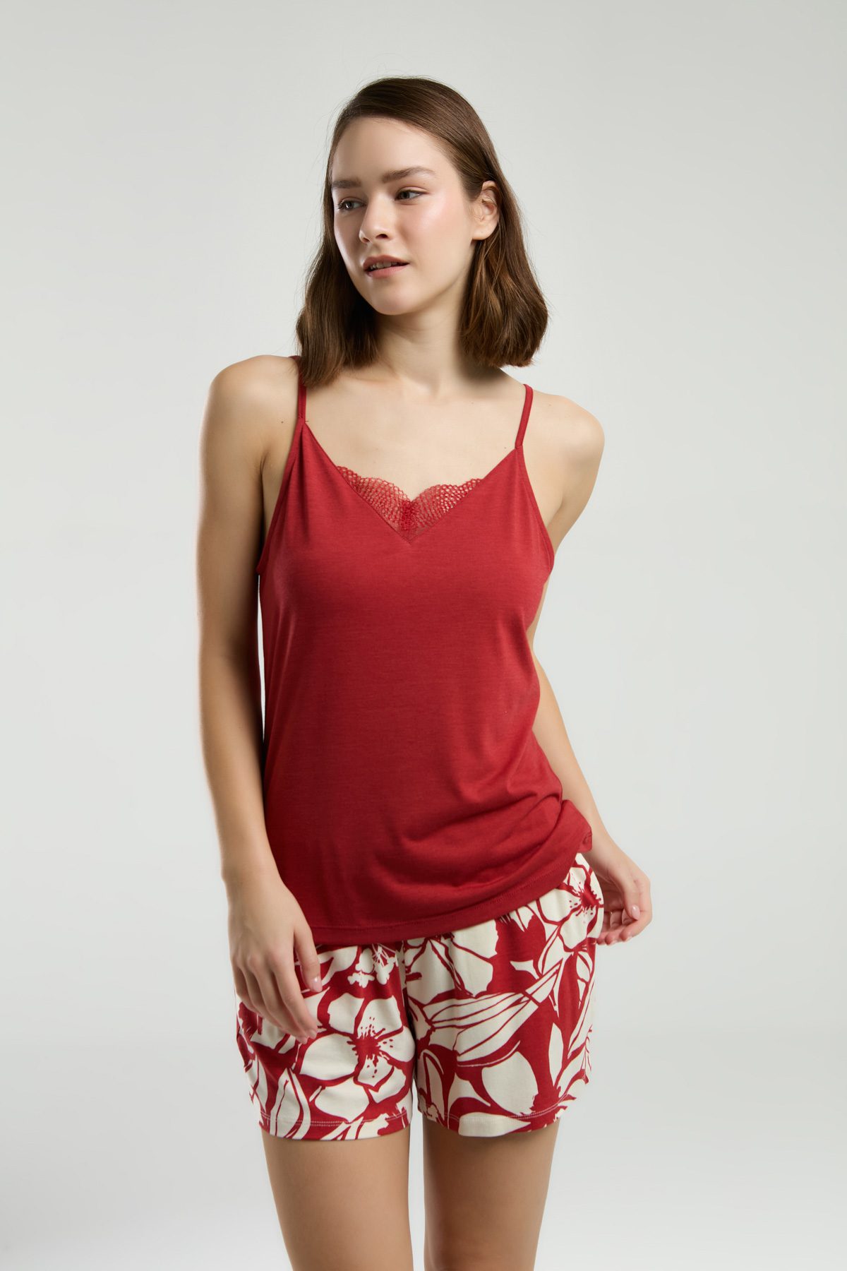 AR3264-S طقم شورت قطعتين لون احمر للنساء