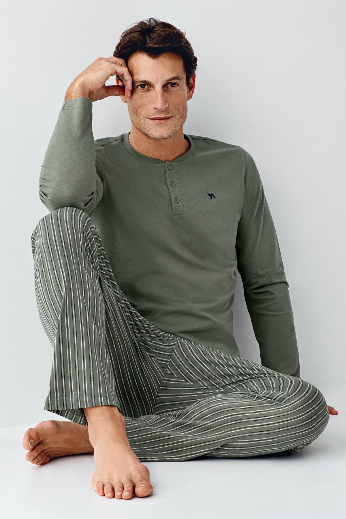 AR3013 طقم بيجاما قطن بأكمام خريفي للرجال