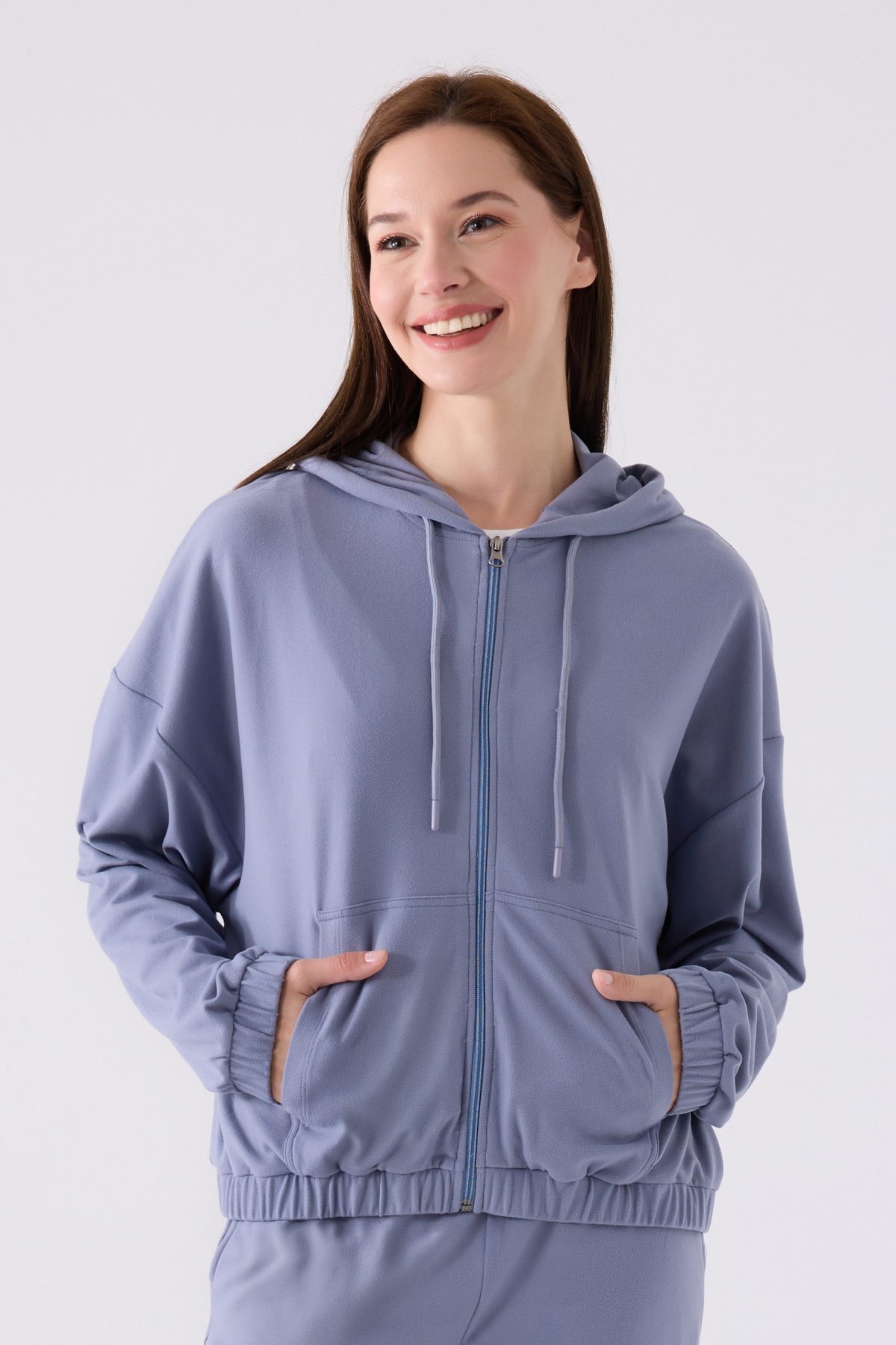 AR1023-S طقم بيجاما #مخمل# -قطعتين- مع سحاب لون زهري بارد