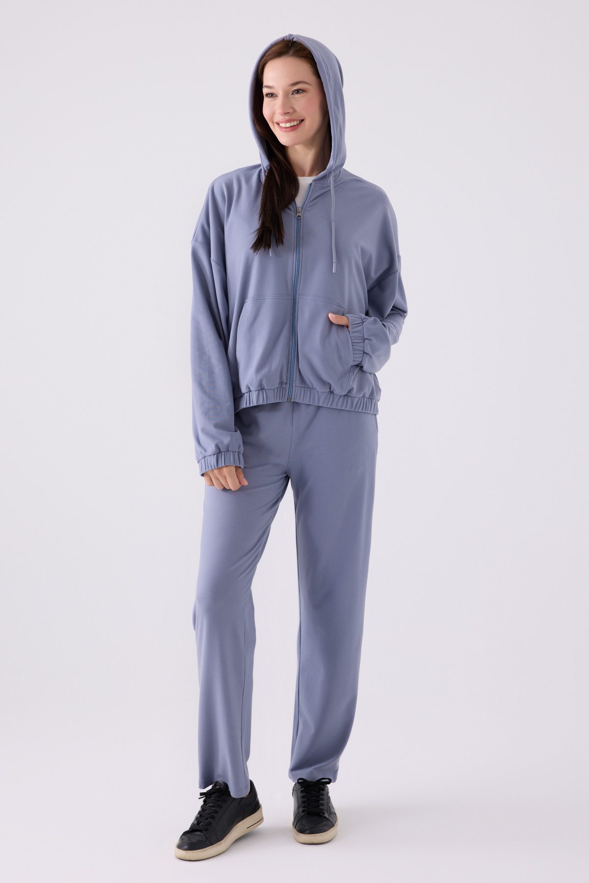 RP3248 طقم تريننج للبنات لون فيروزي قطن ثلاث خيوط بلوز هودي مع طاقية وبنطال خصر عالي