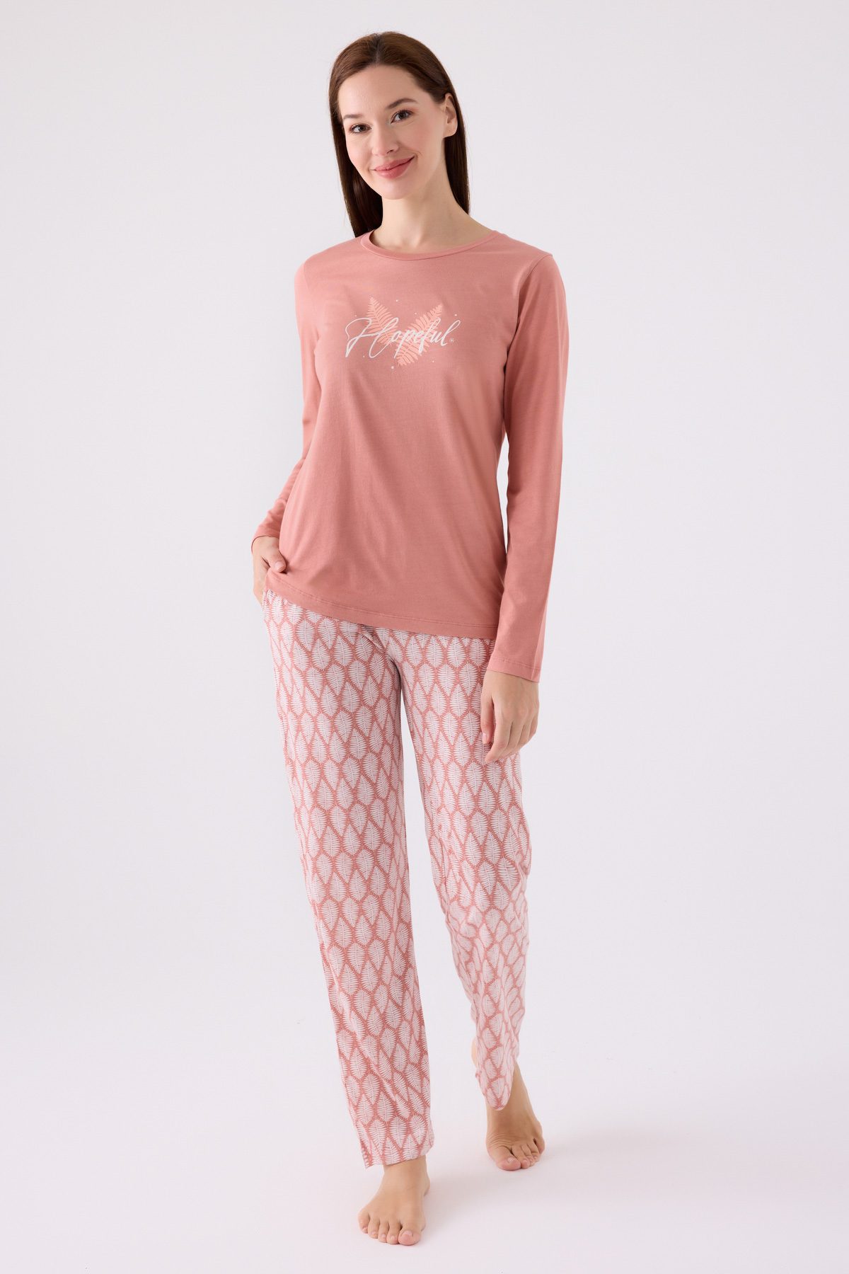 AR3121-S طقم بيجاما قطن للنساء قطعتين بلوز لون زهري مع بنطال لون ازرق