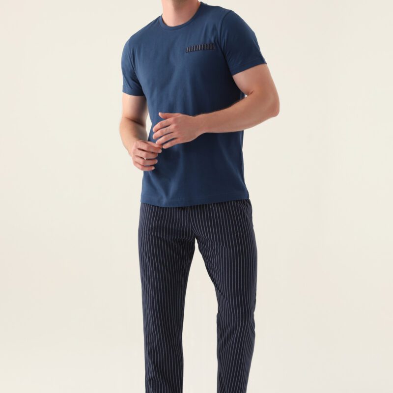 PC7717-S PIERRE CARDIN طقم بيجاما بأزرار لون كحلي قطن