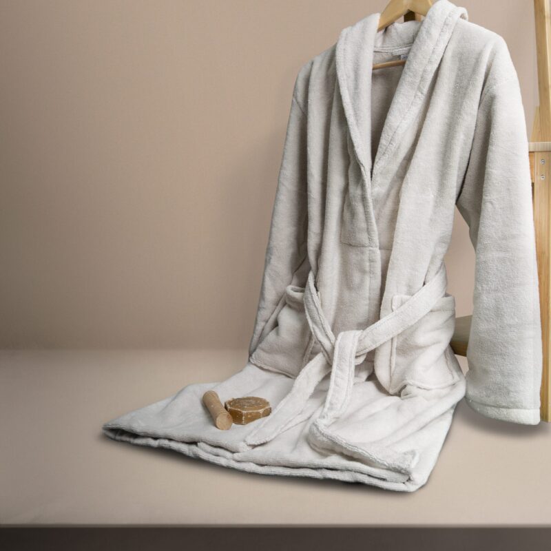 فاميلي ست- ٦ قطع – ٢ روب -رجالي و ستاتي- وبشكير يدين- ومنشفة عدد ٢- لون كريم ورمادي