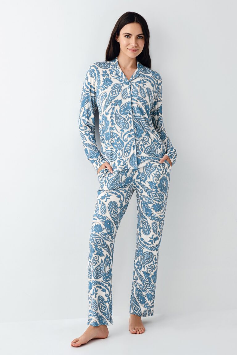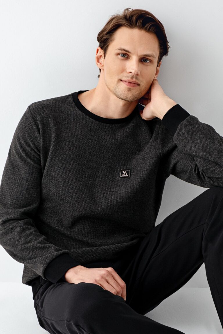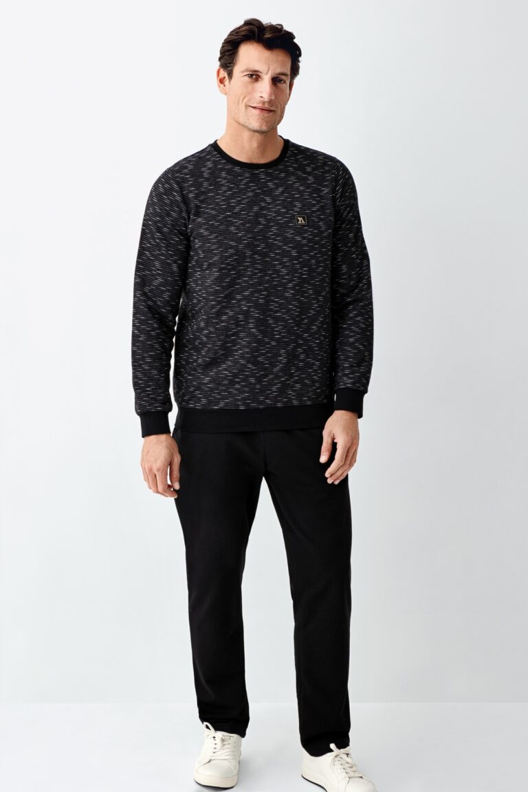 AR1059-S طقم بيجاما -قطعتين- لون رمادي مخطط افقي