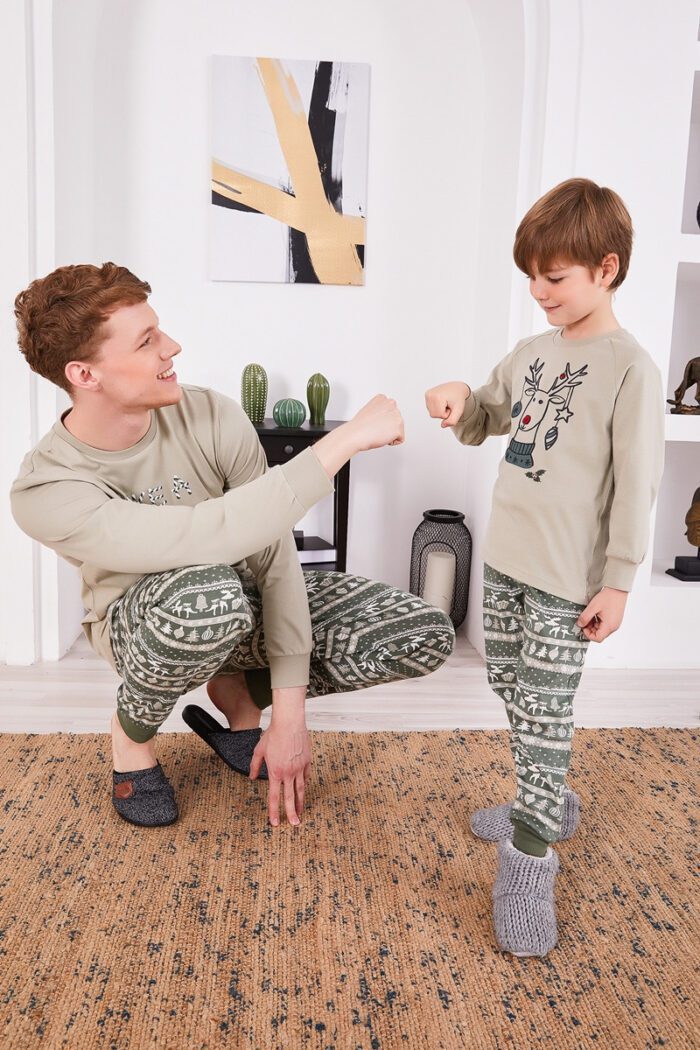 AR2303 كولكشن الاب وابنه ولكل العائلة طقم بيجاما قطن قطعتين لون اخضر