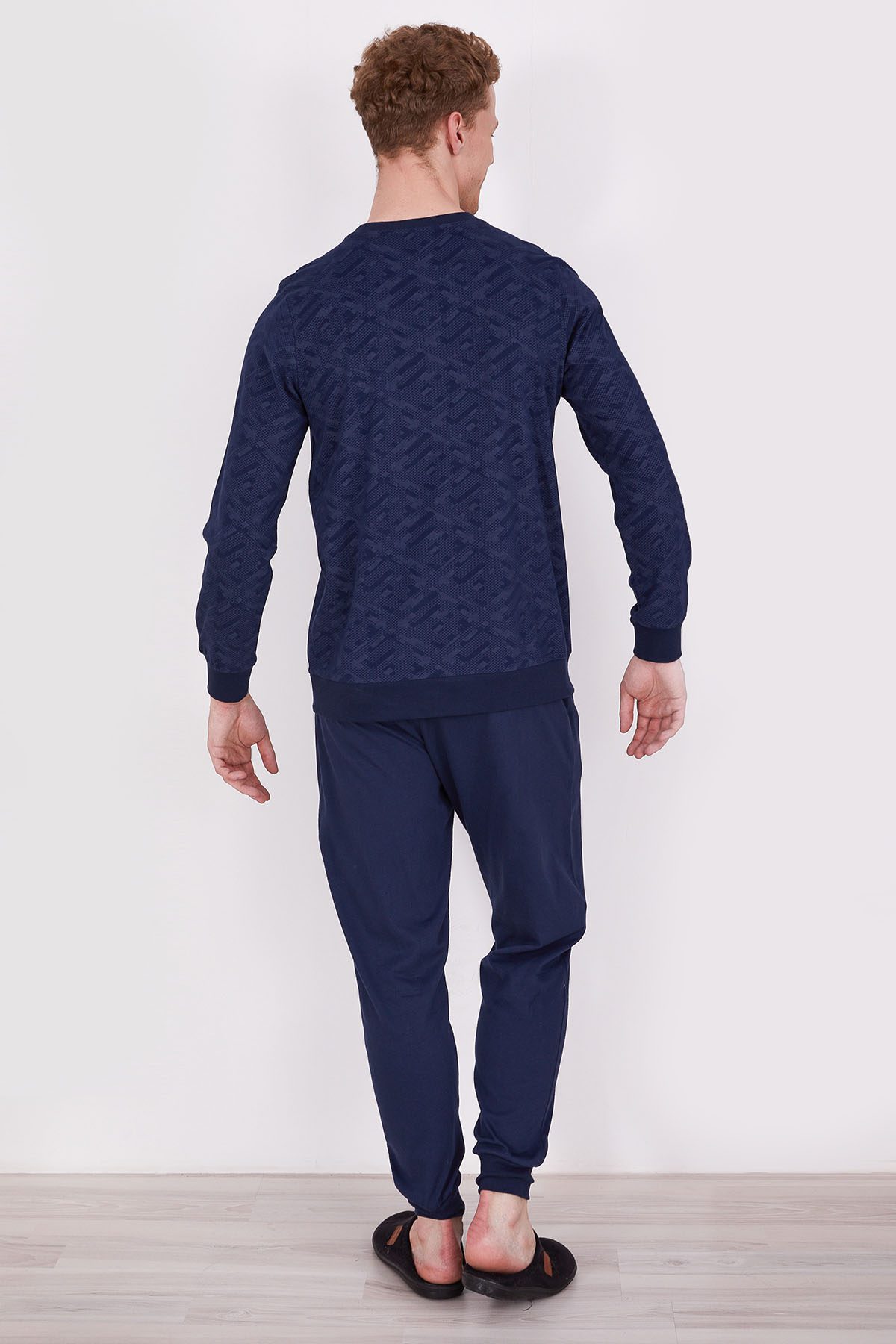 AR2332-V1 طقم بيجاما قطعتين للرجال قطن بلوز لون كحلي مع بنطال لون كحلي