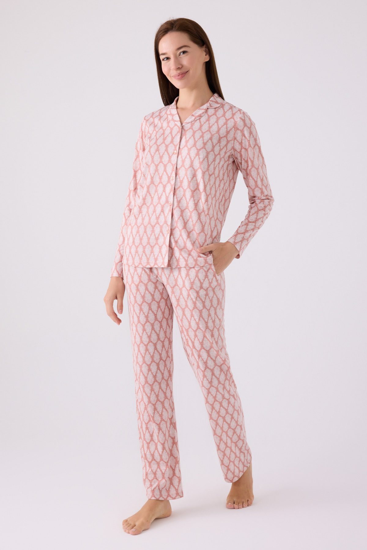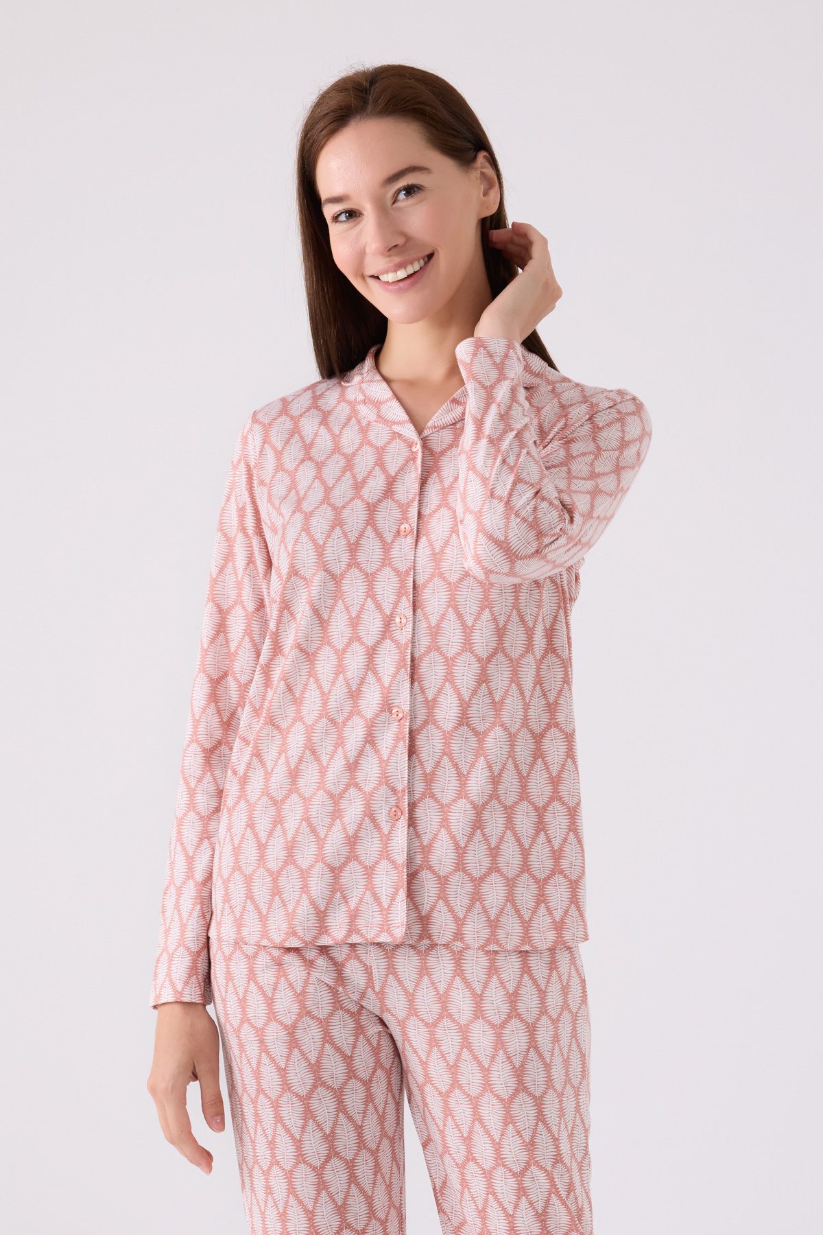 AR3073-S طقم بيجاما للنساء بأزرار قطن ومريح