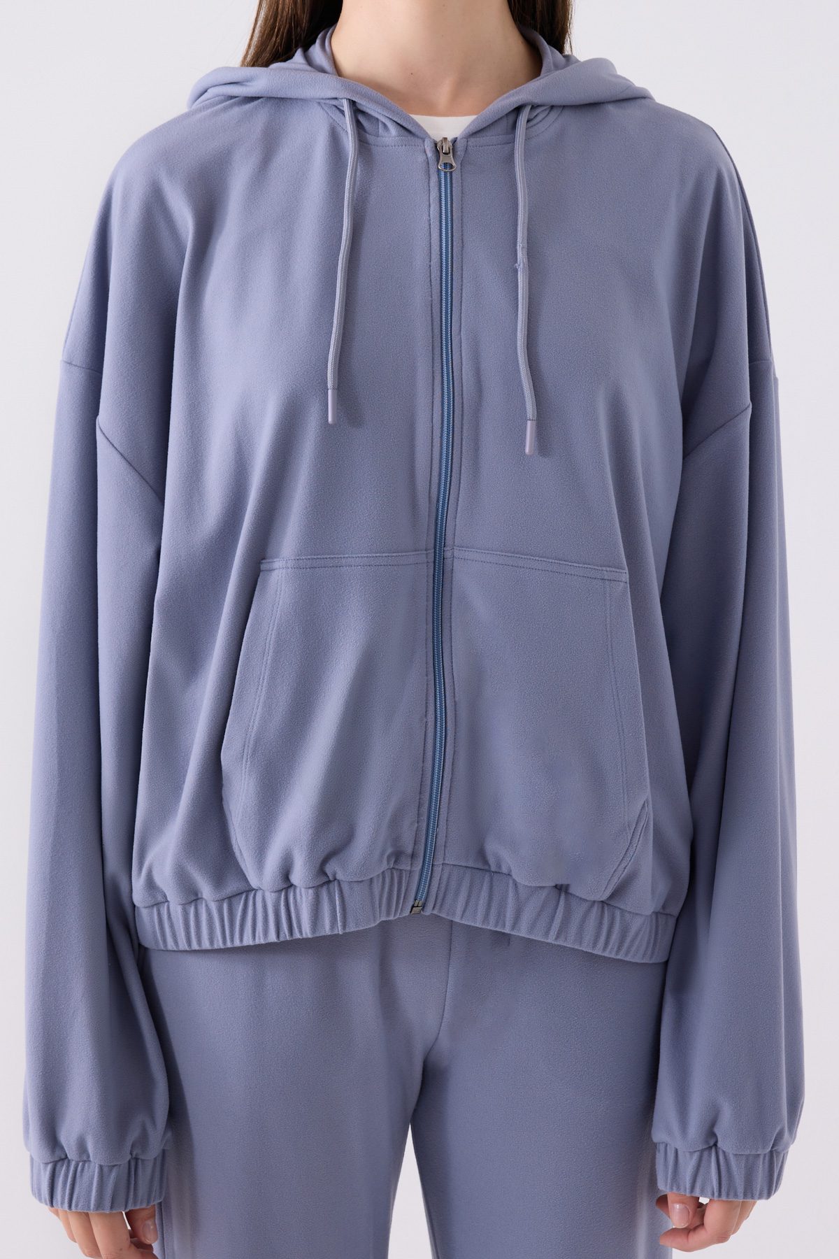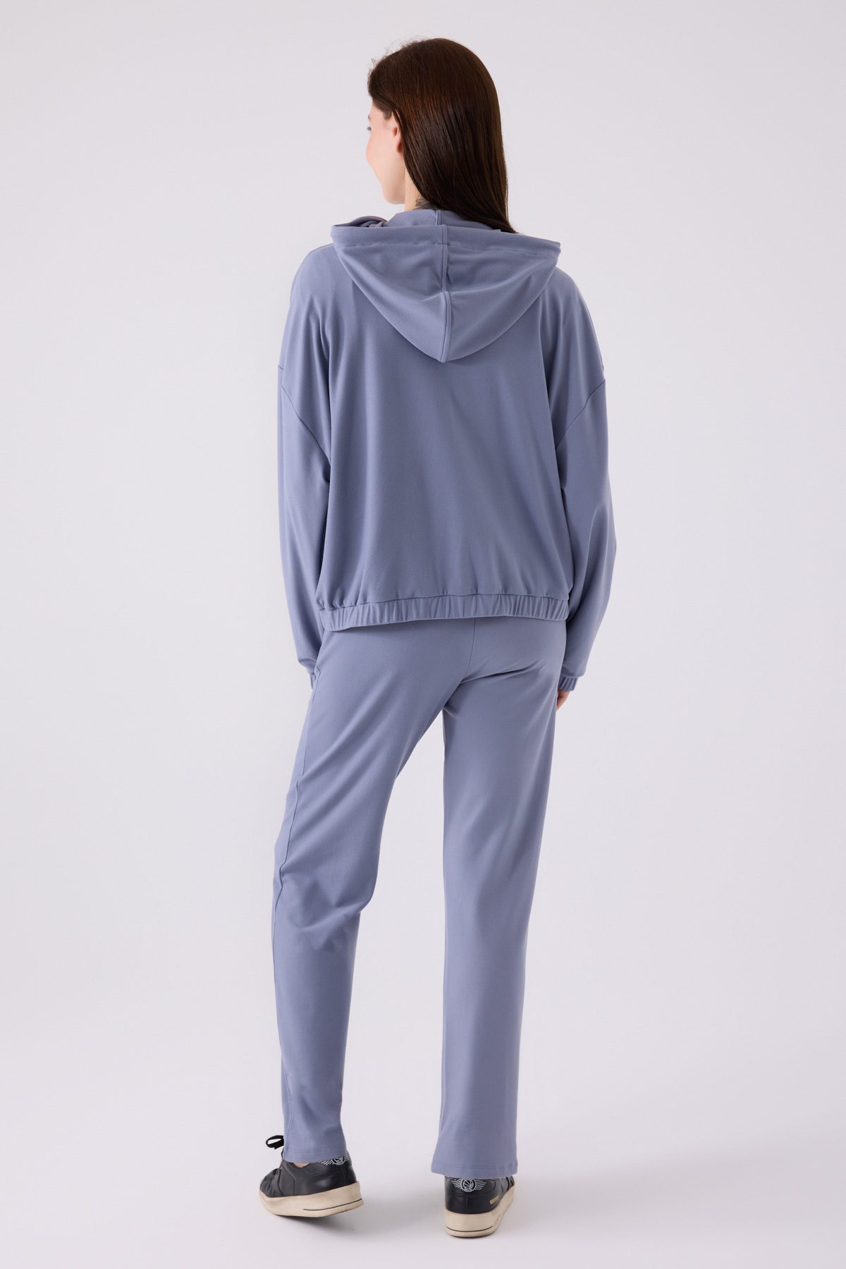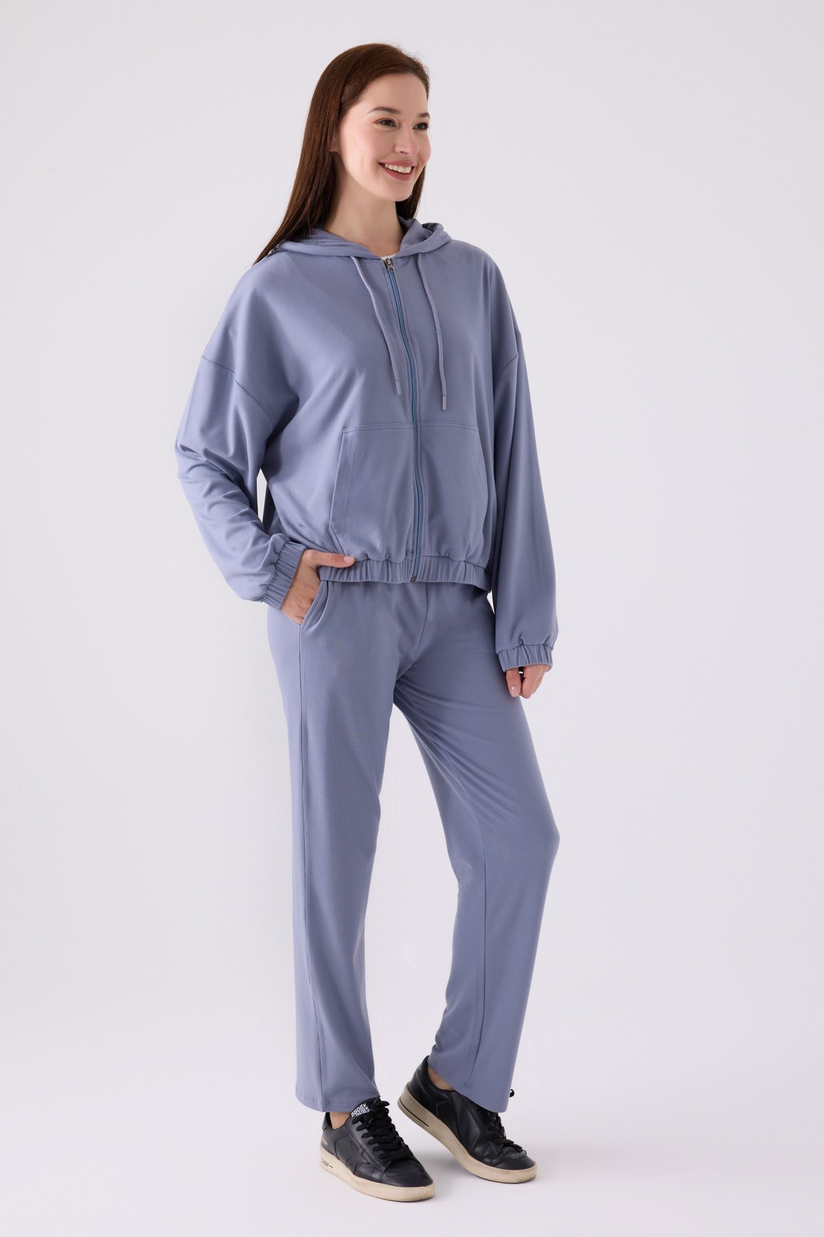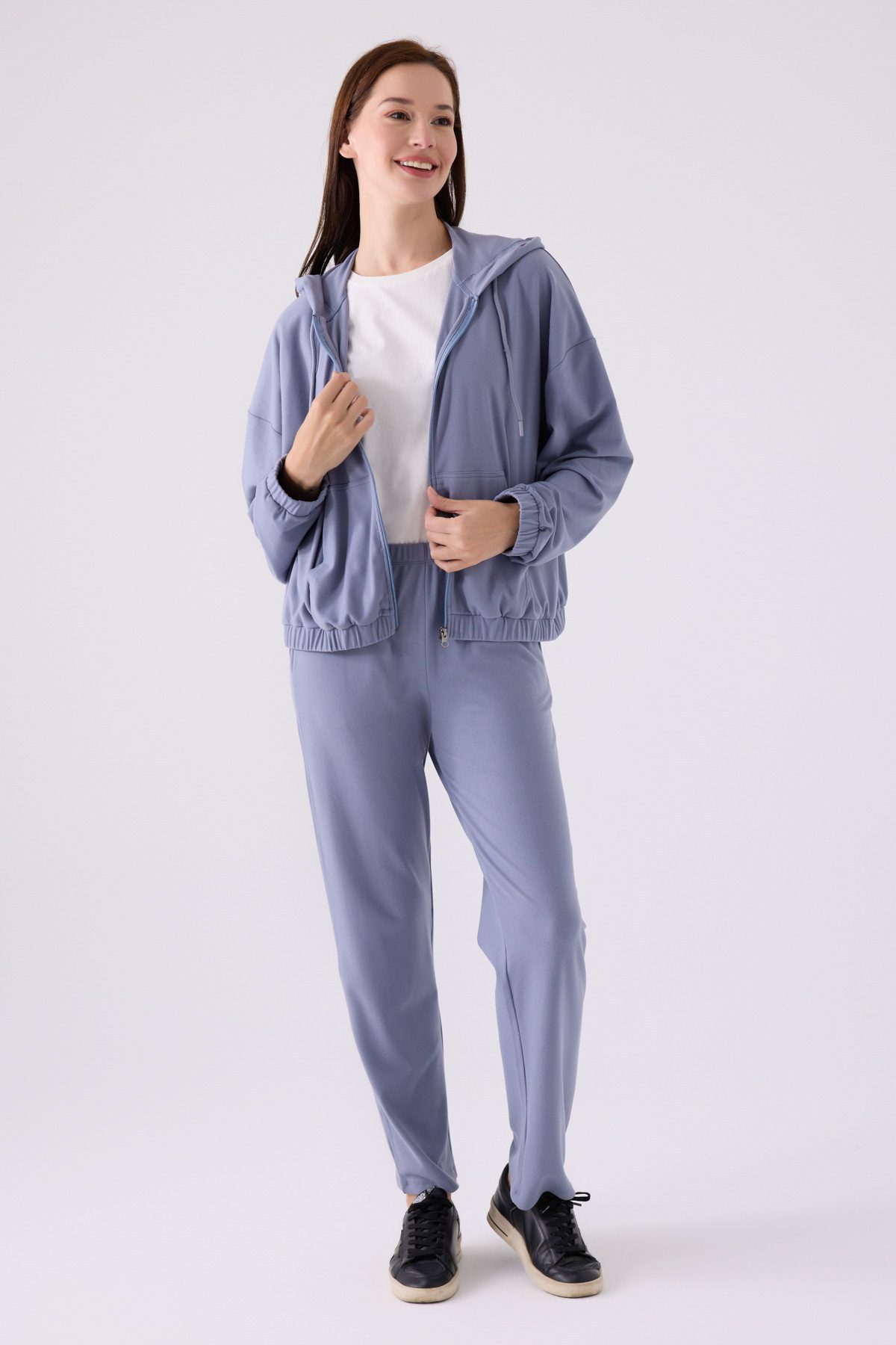 بلوز بسحاب مع طاقية لها جيب، بنطال خصر عالي له جيب