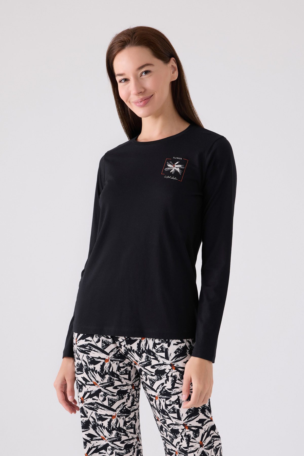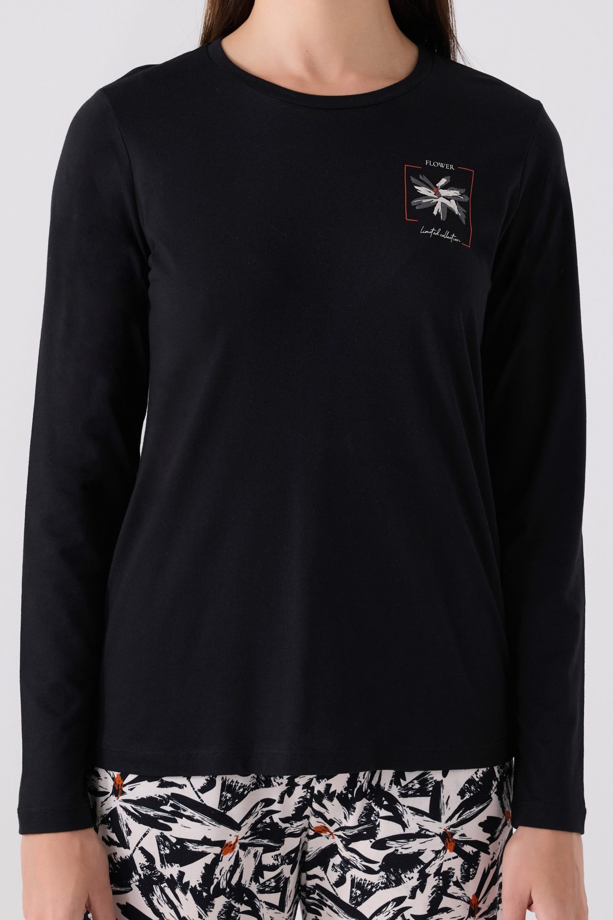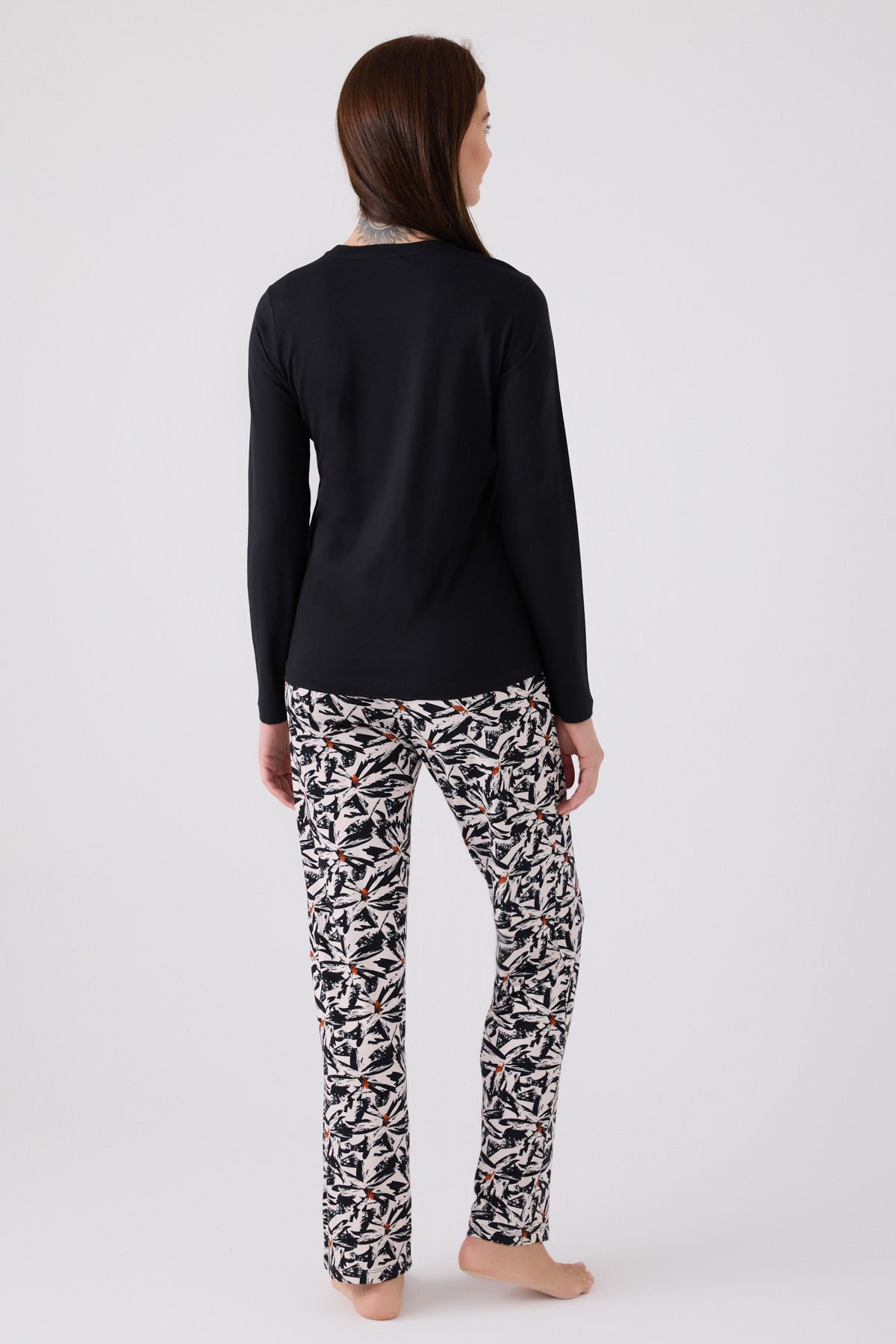 AR3112 طقم بيجاما قطن بتصميم مميز وانيق باللون الاسود للنساء