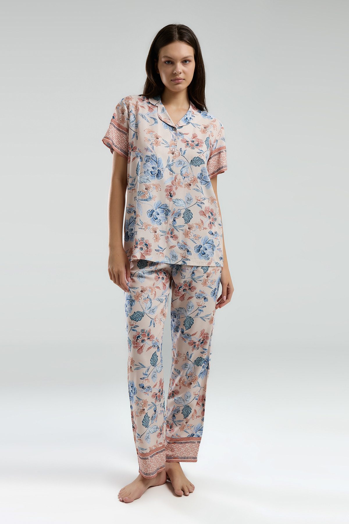 AR3201-S طقم بيجاما بأزرار قماش بارد لون بيج