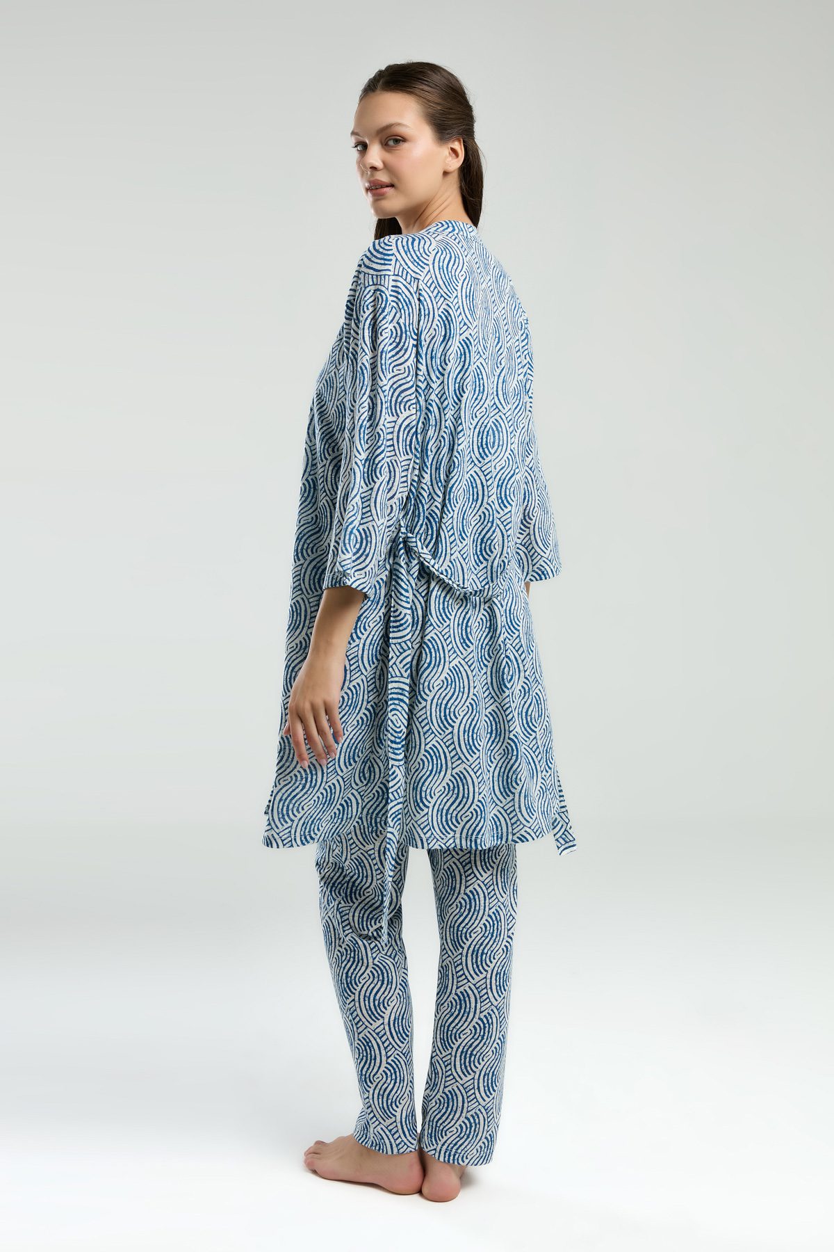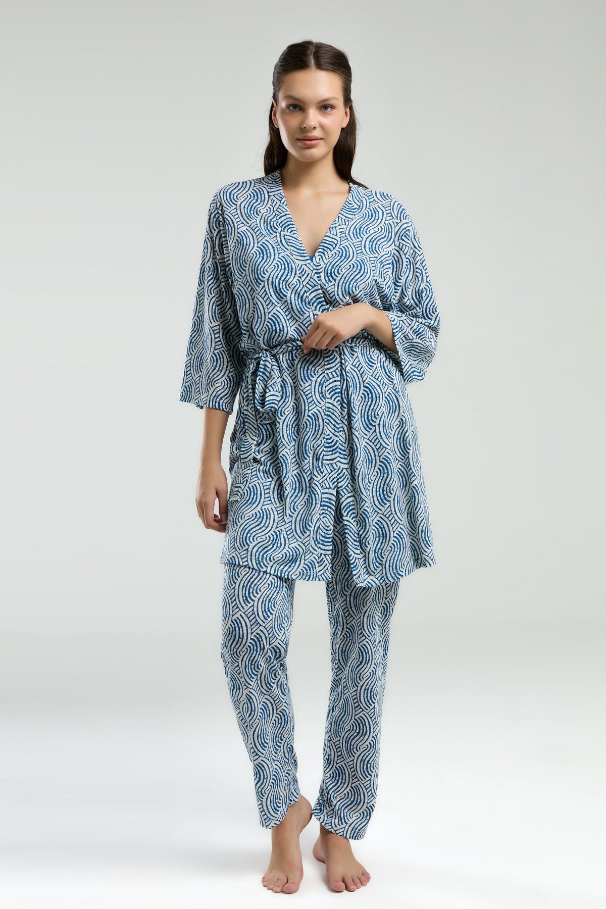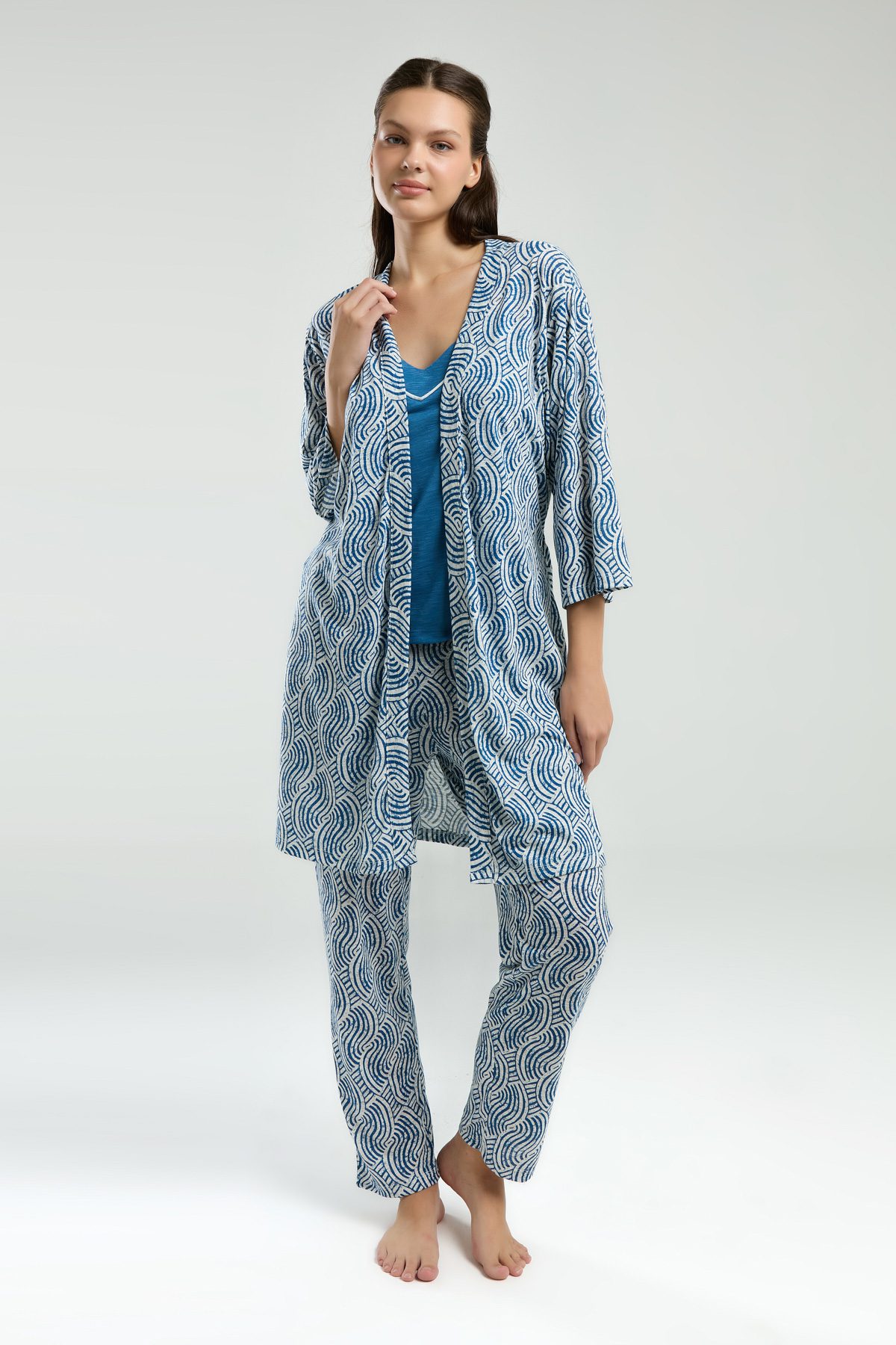 AR3210-S طقم قماش ثلاث قطع مع روب للنساء بتصميم ولون انيق