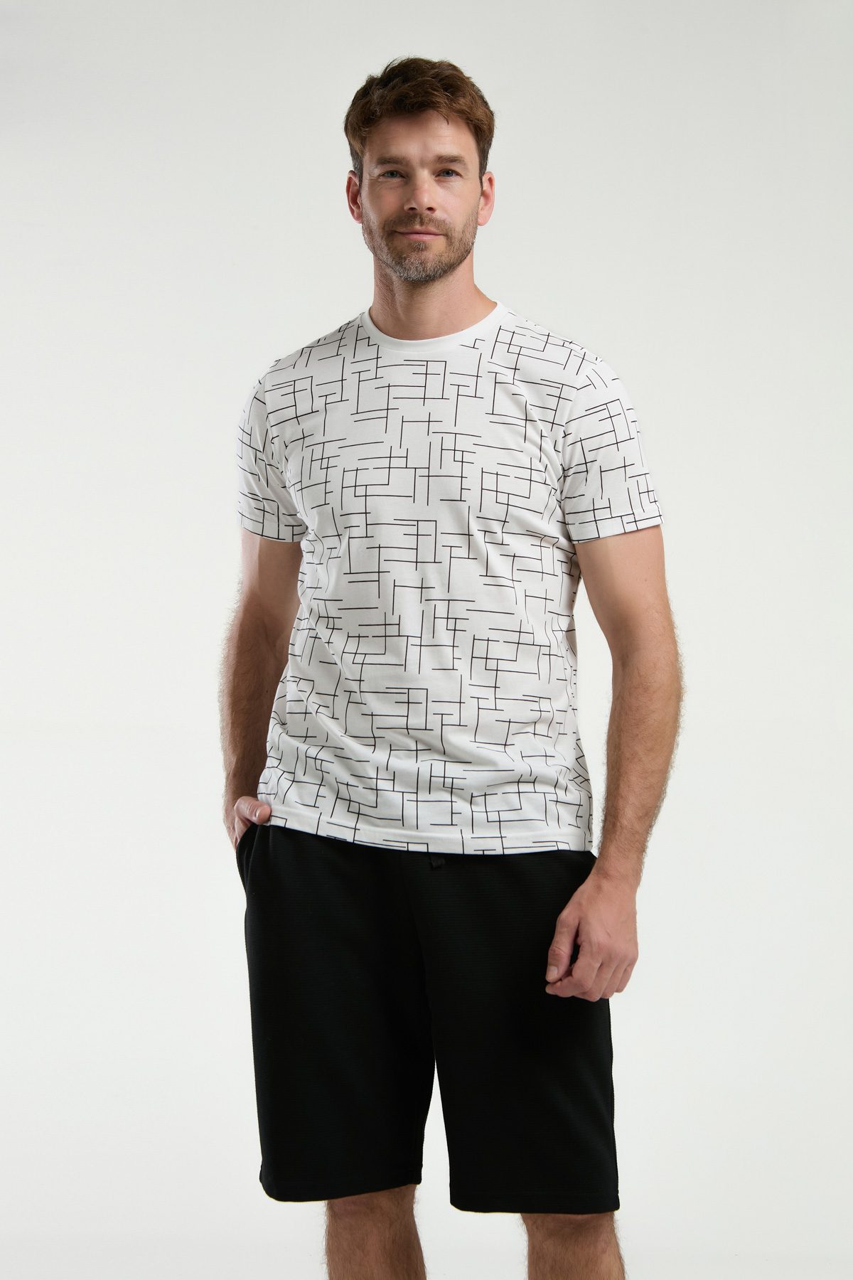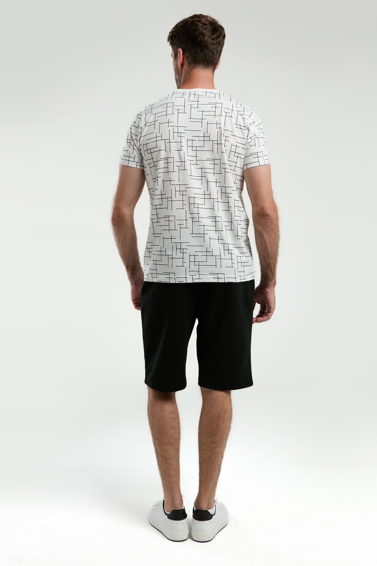 AR3352-S طقم بيجاما قطن للرجال قطعتين بلوز لون كحلي مع بنطال مقلم
