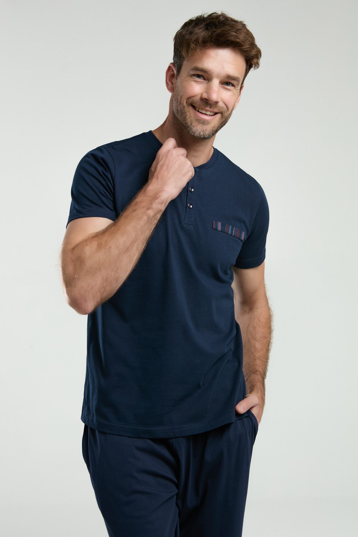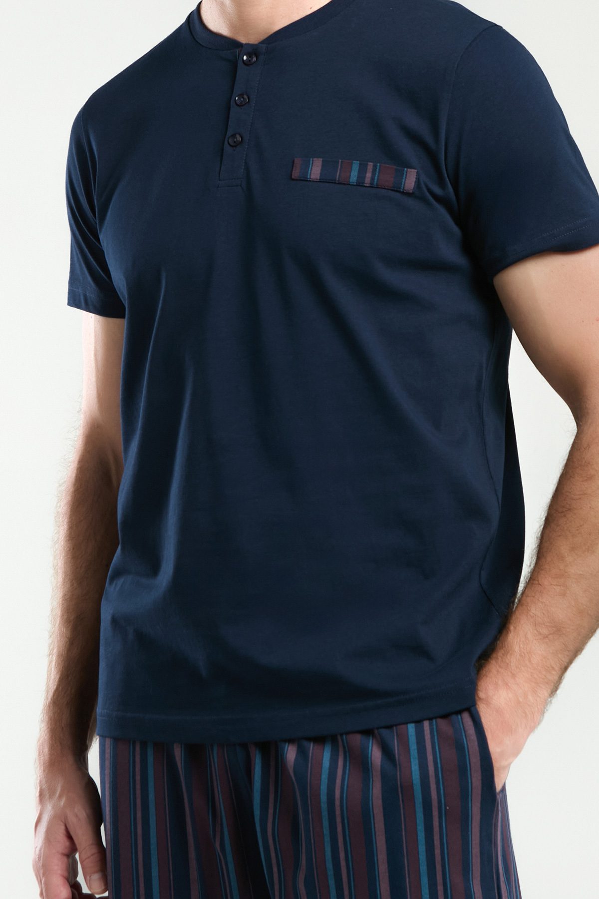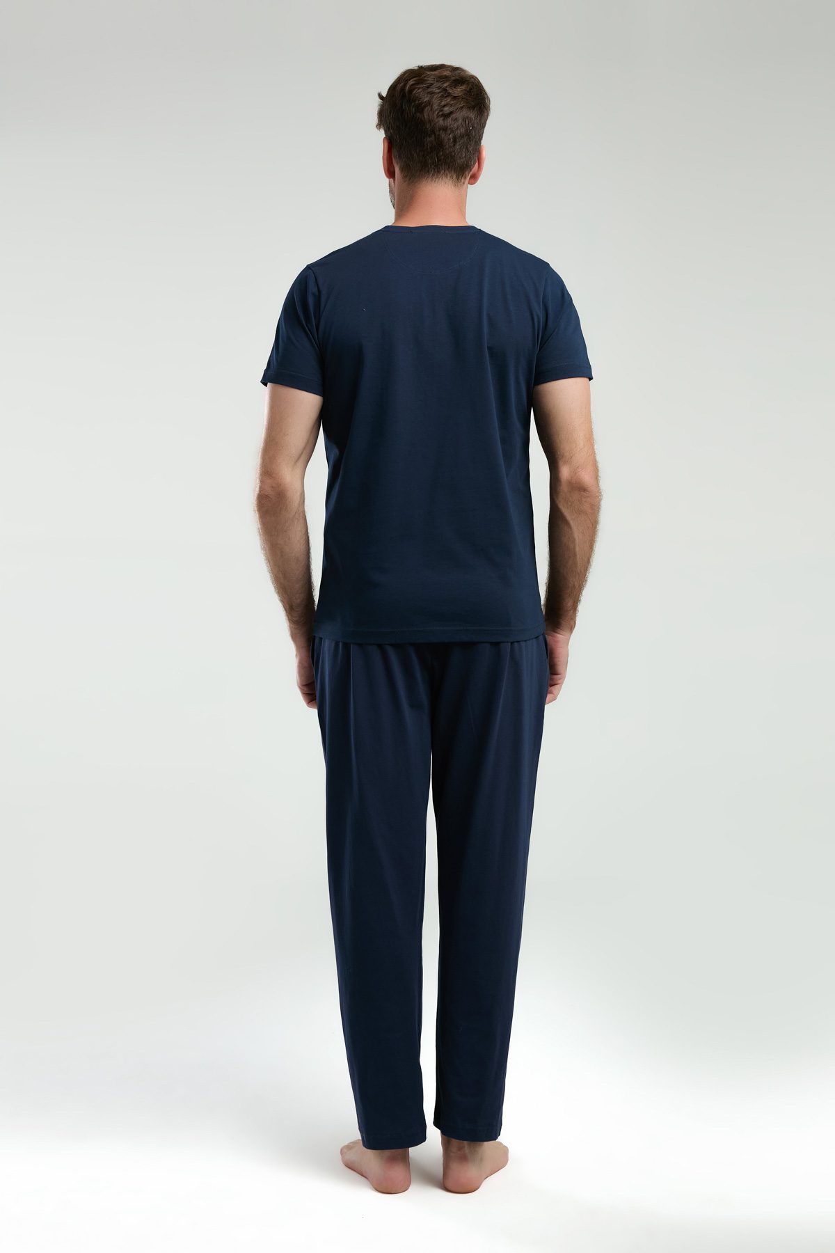 AR3354-S طقم بيجاما لون كحلي ثلاث قطع قطن للرجال مع علبة كرتون