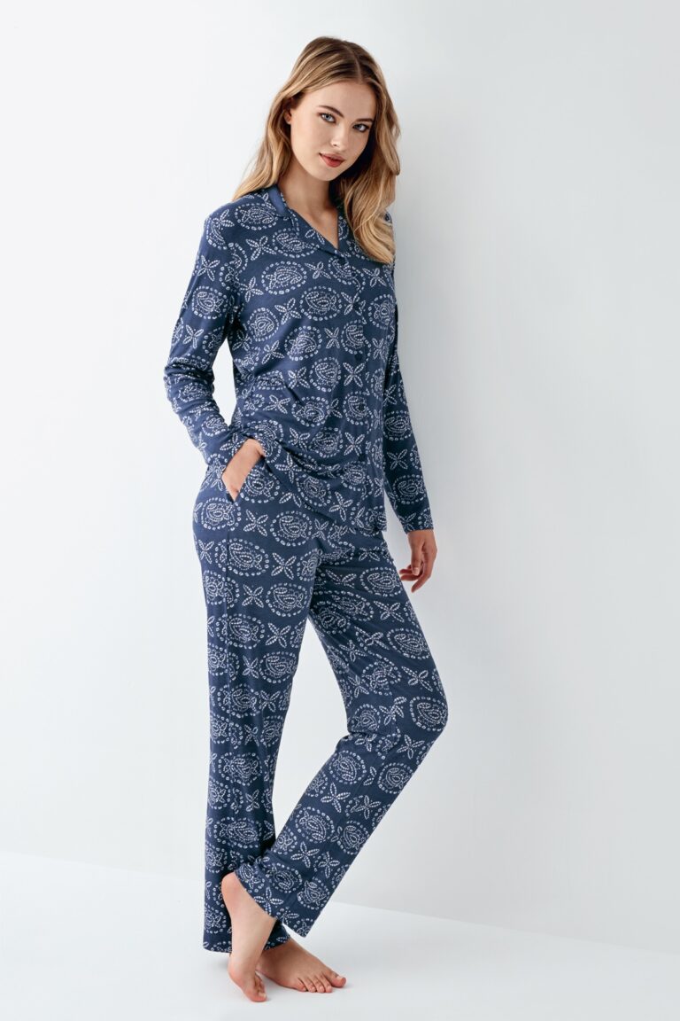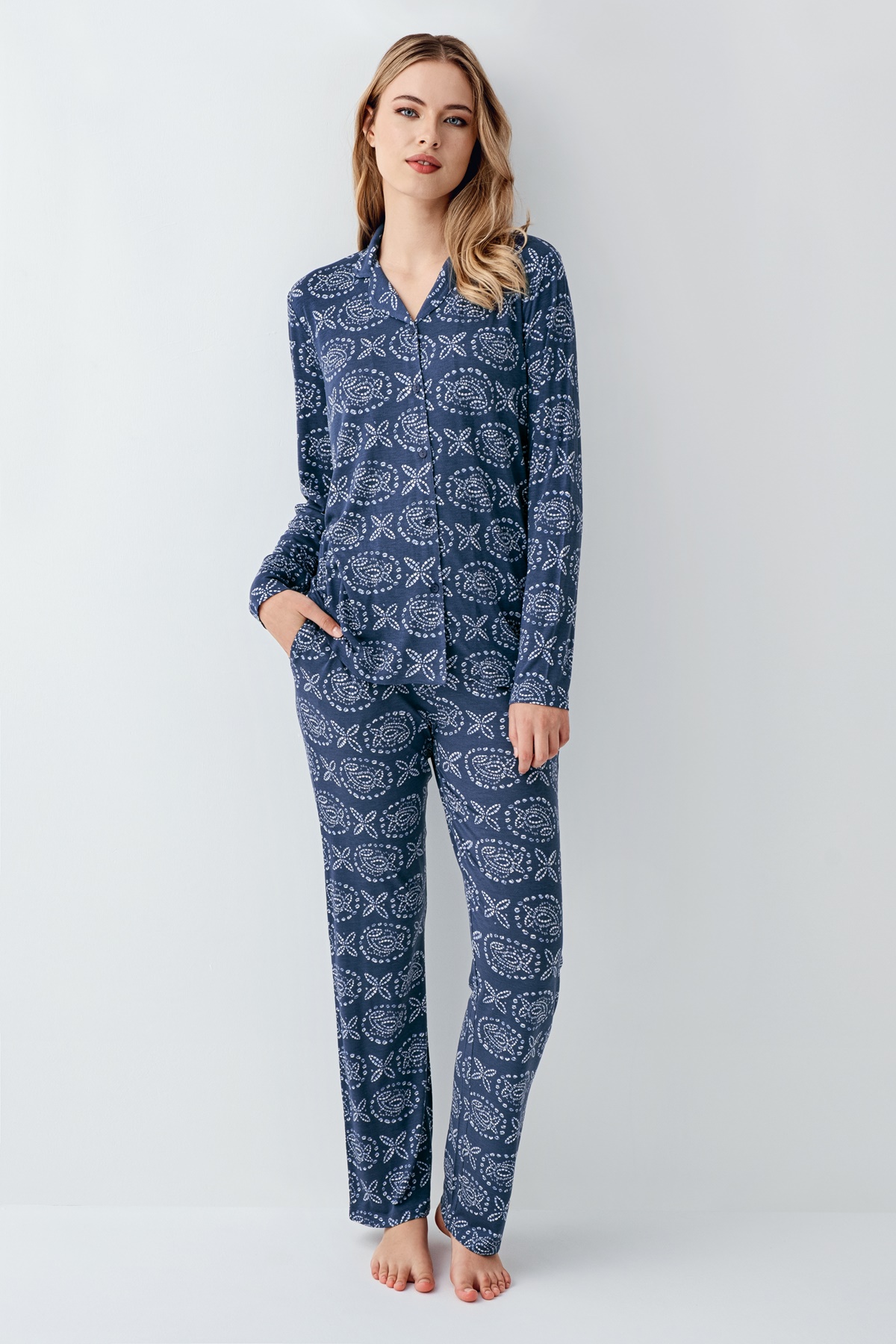 AR3402-S طقم بيجاما قطن بأزرار لون كحلي للنساء