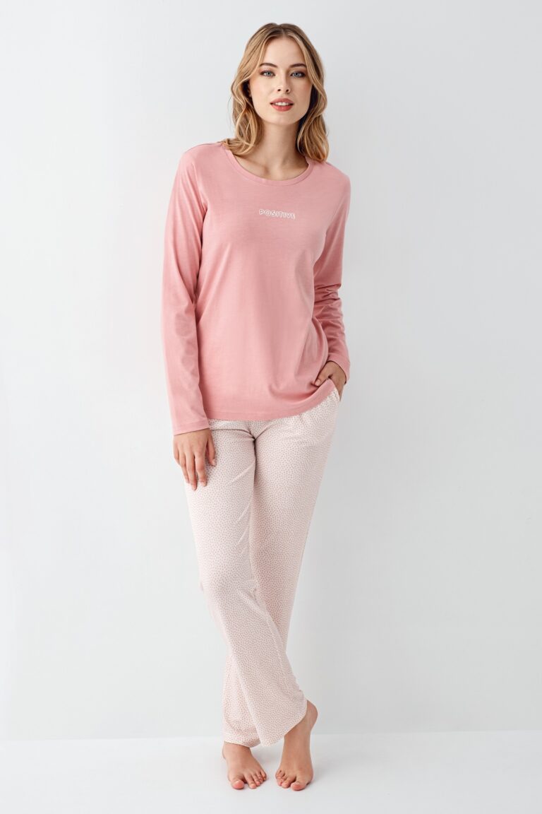 AR3417 طقم بيجاما قطن لون زهري للنساء