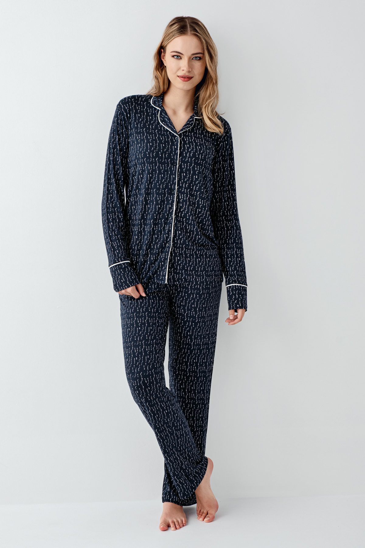 AR3430-S طقم بيجاما قطن بأزرار لون كحلي مع نقش