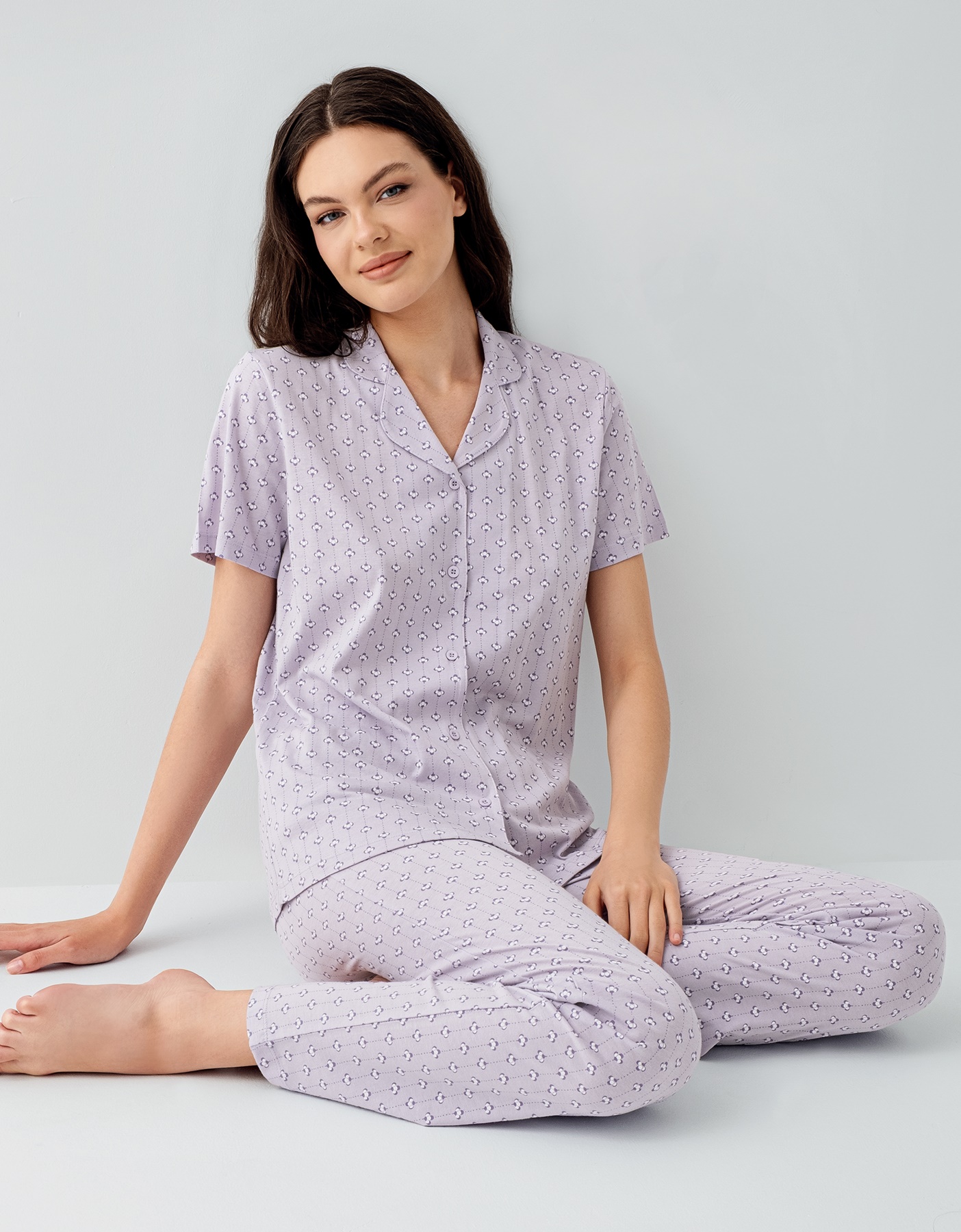 AR3552-S طقم بيجاما بأزرار للنساء قطن قطعتين