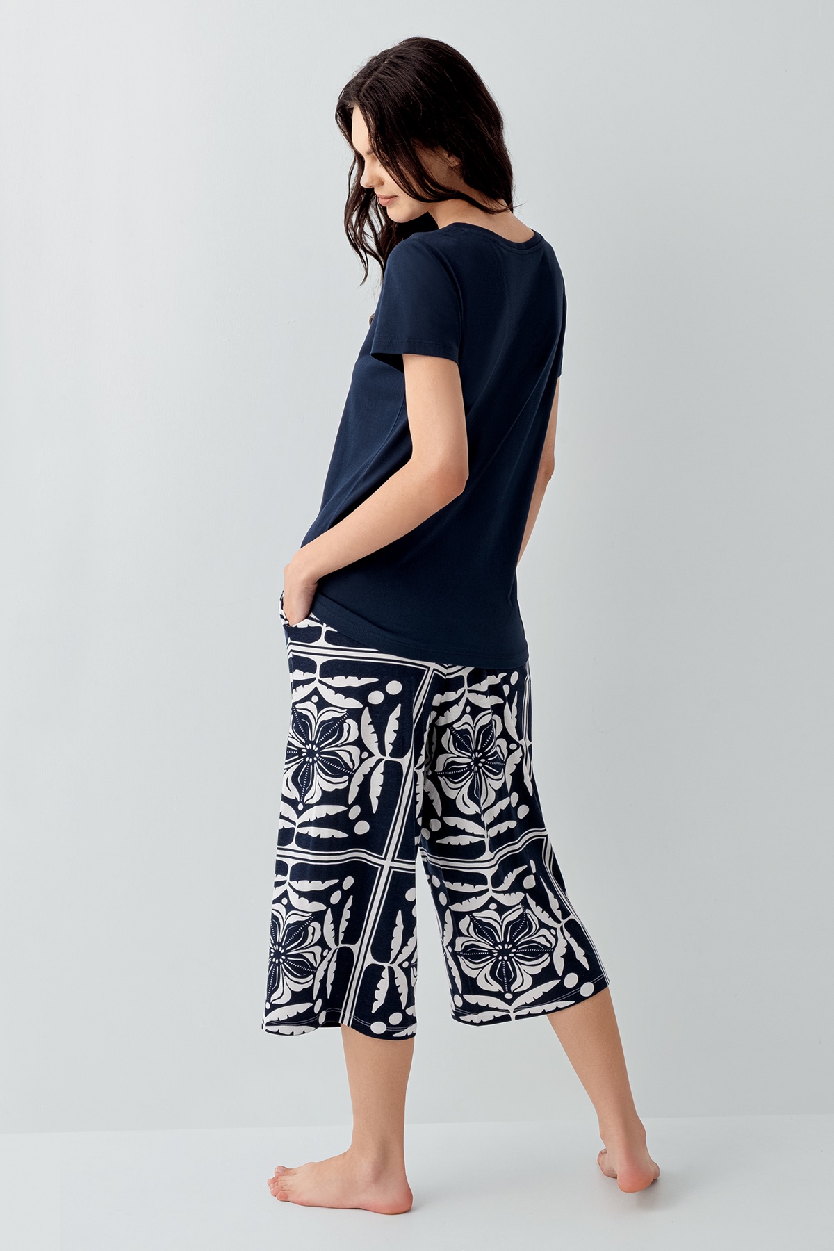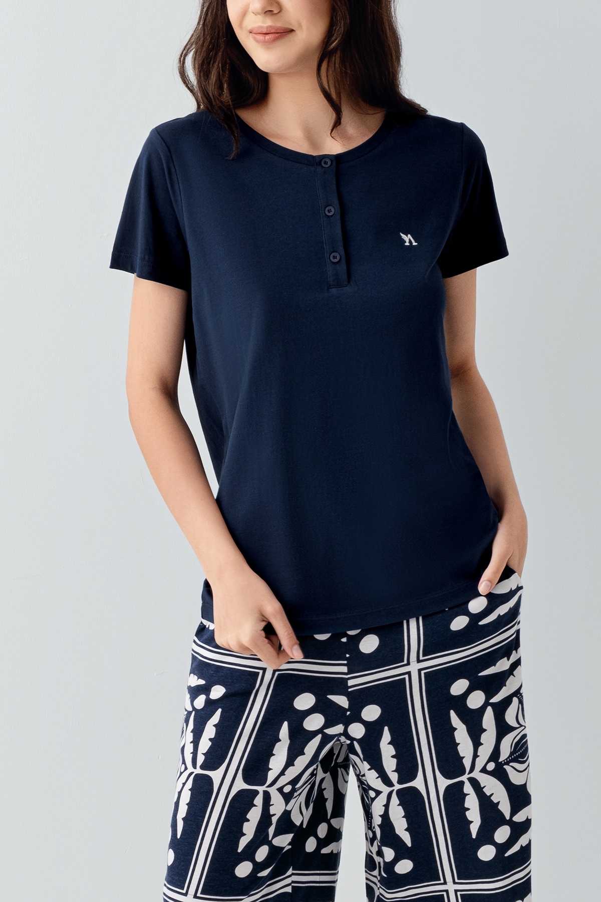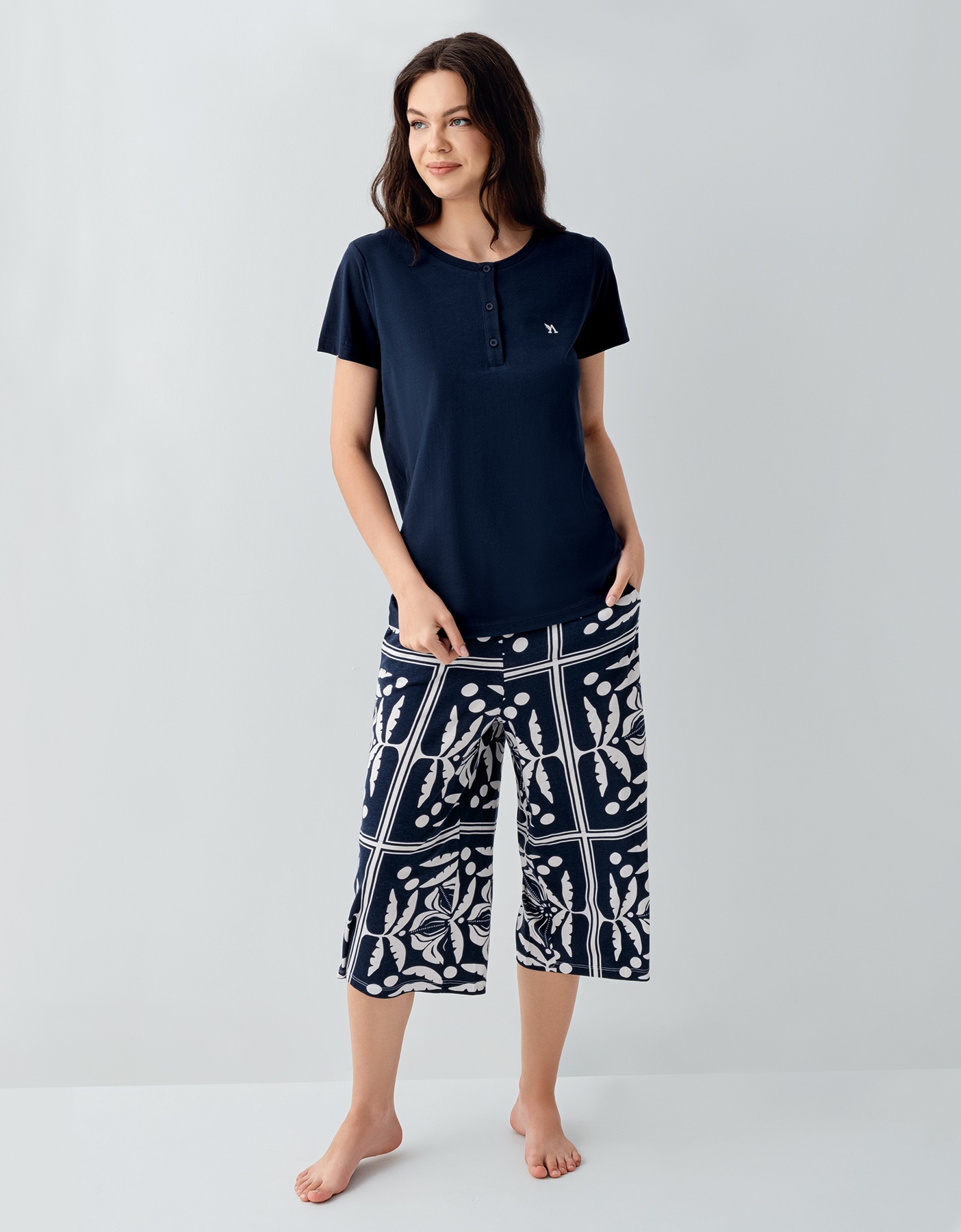 AR3566 طقم بيجاما قطن نصف كم بنطال قصير للنساء