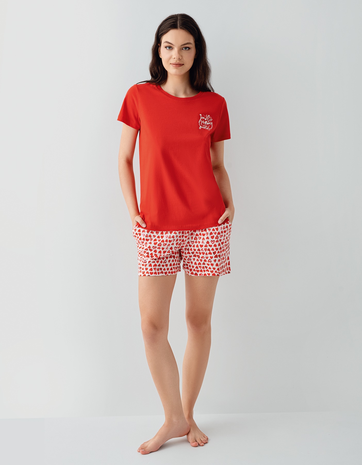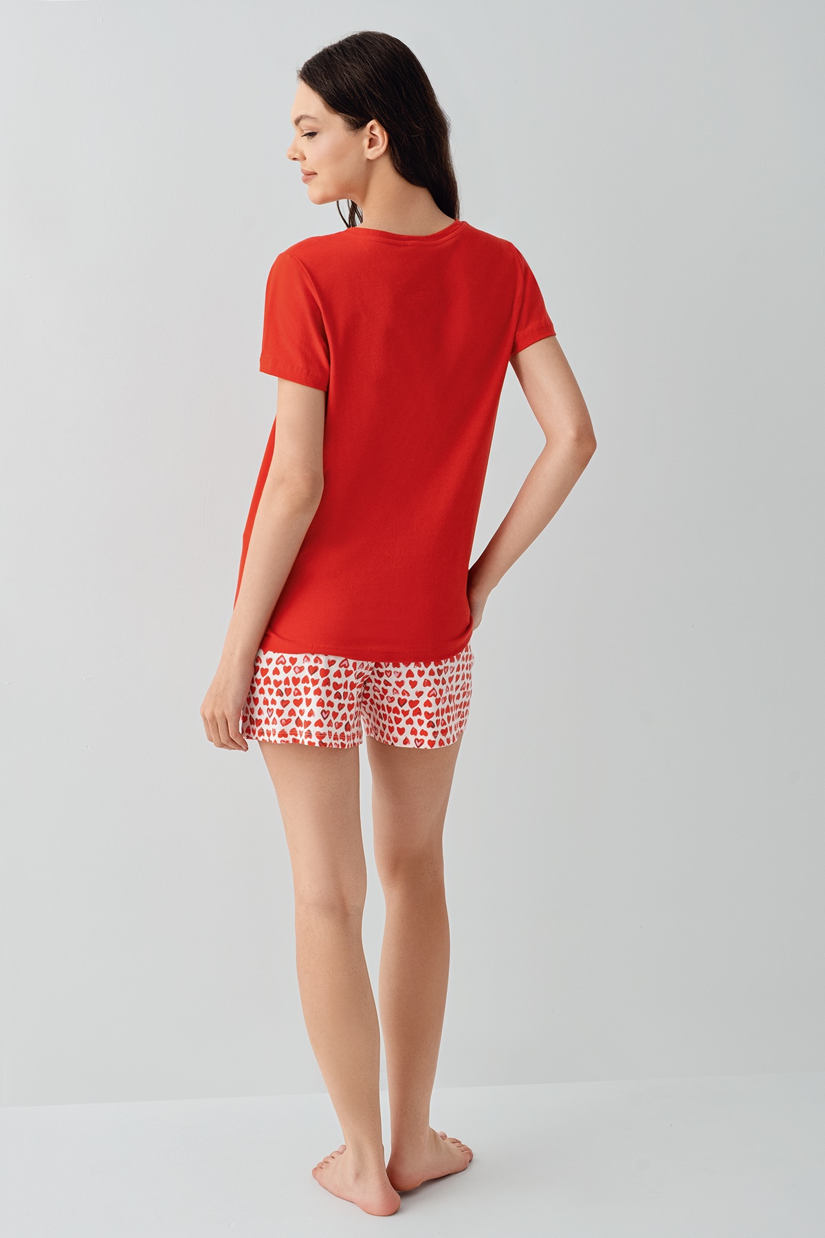 AR3582-S طقم بيجاما شورت قطن للنساء قطعتين لون احمر