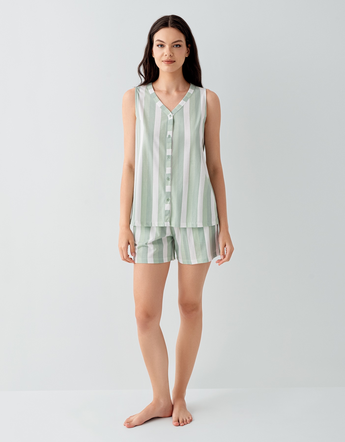 AR3590-S طقم بيجاما شورت قصير قطن بأزرار قطعتين للنساء
