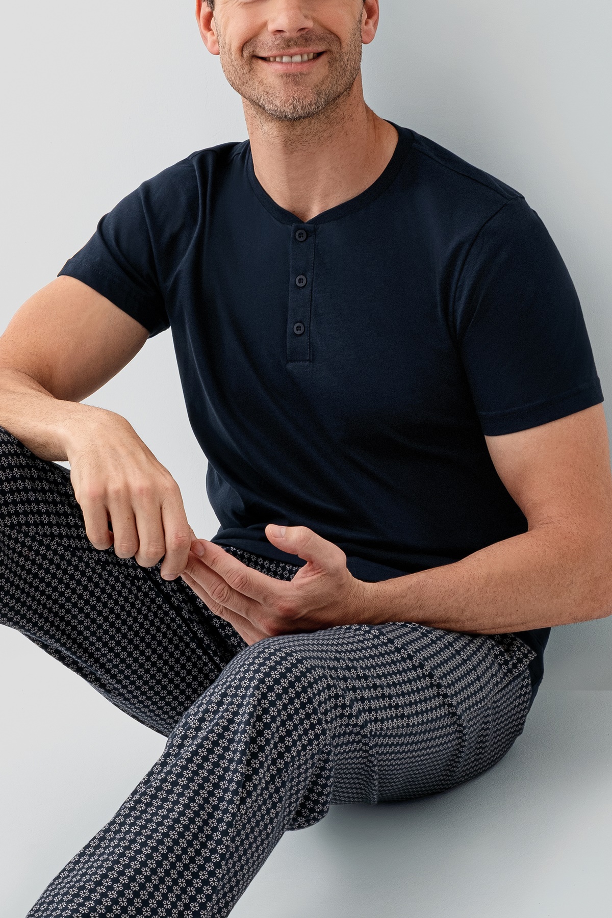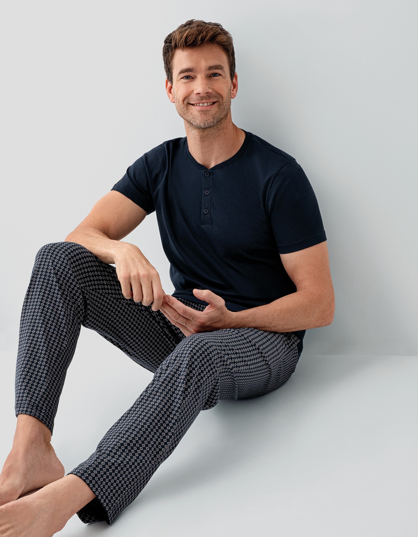 AR3676 طقم بيجاما قطن قطعتين للرجال لون كحلي