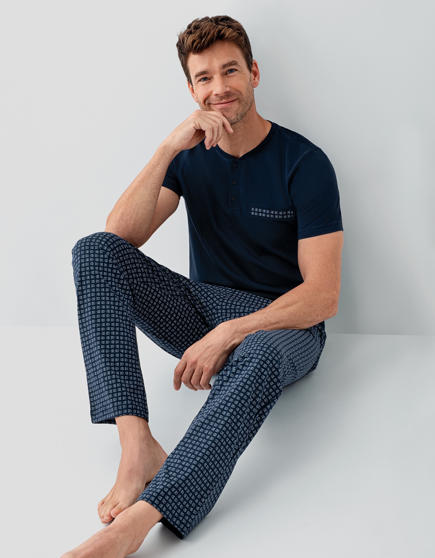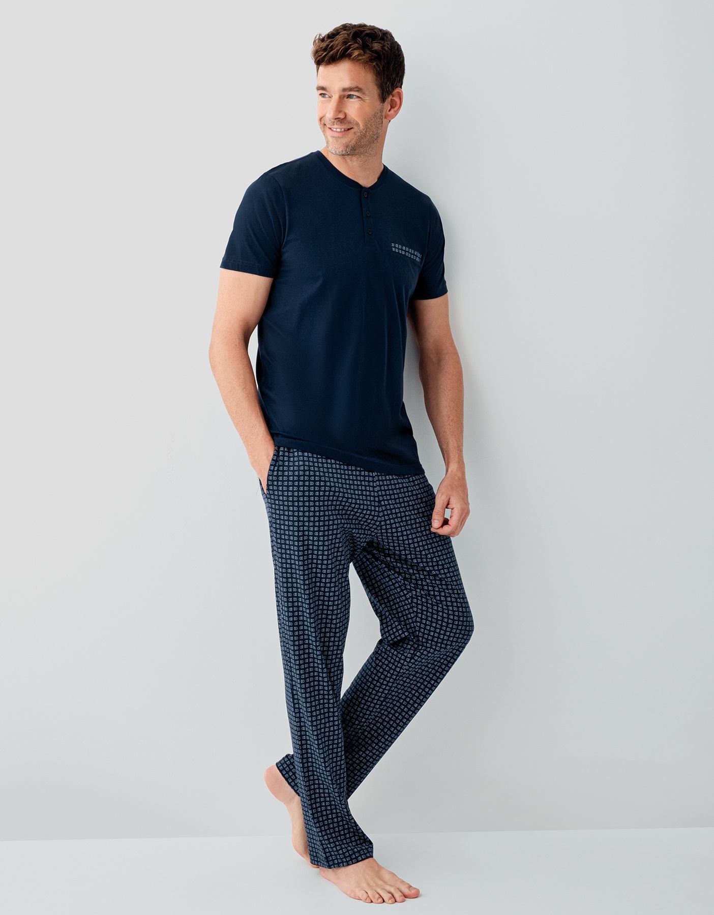 AR3688 طقم بيجاما قطن قطعتين للرجال لون كحلي