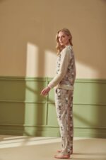 F-4266 طقم بيجاما شتوي قطعتين لون افوايت اكمام فرو