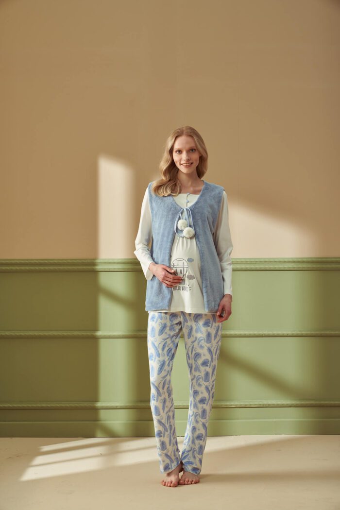F -4277 طقم بيجاما ثلاث قطع مع جاكيت من دون اكمام للحمل