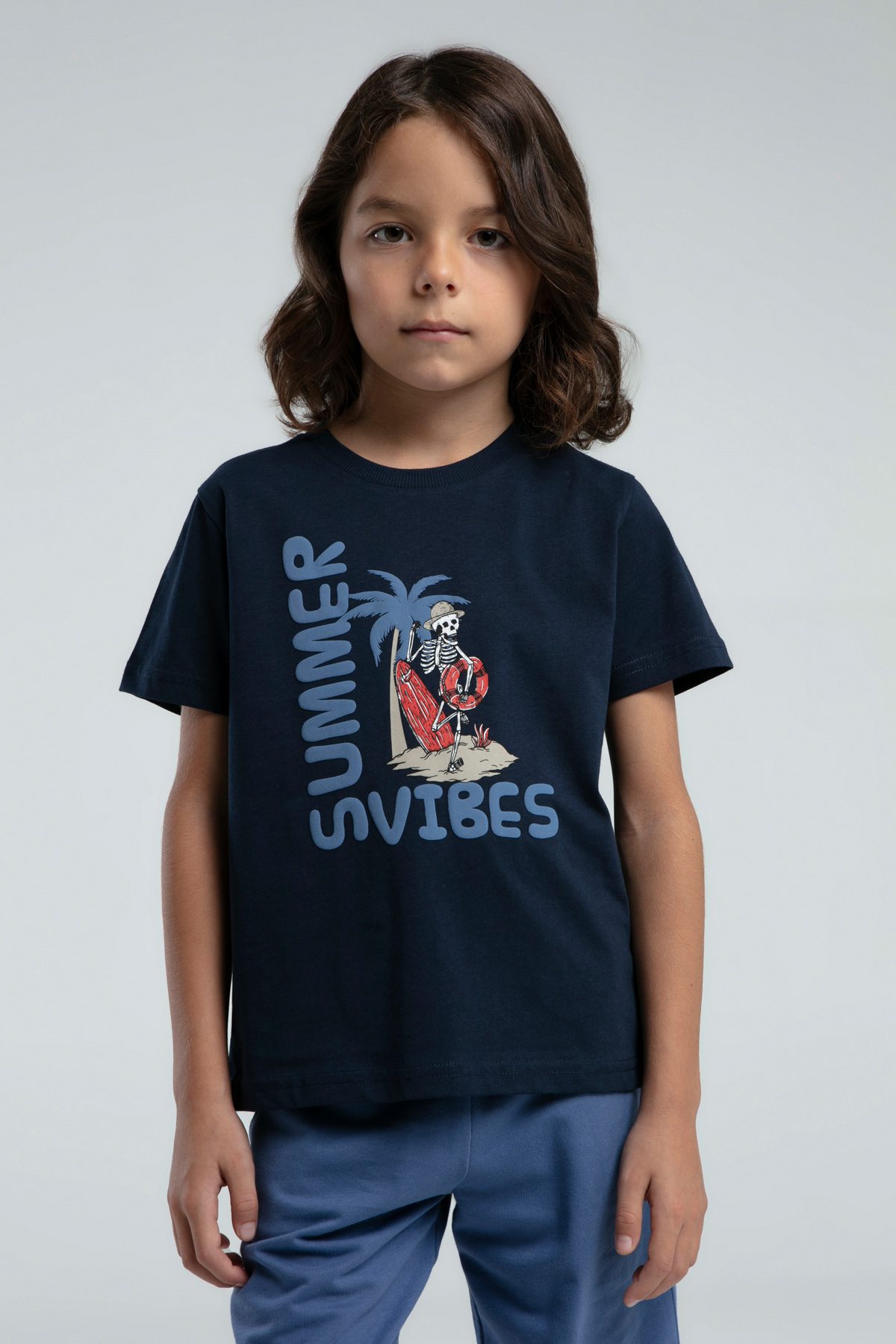 RP3572 طقم شورت للاولاد قطن قطعتين كحلي