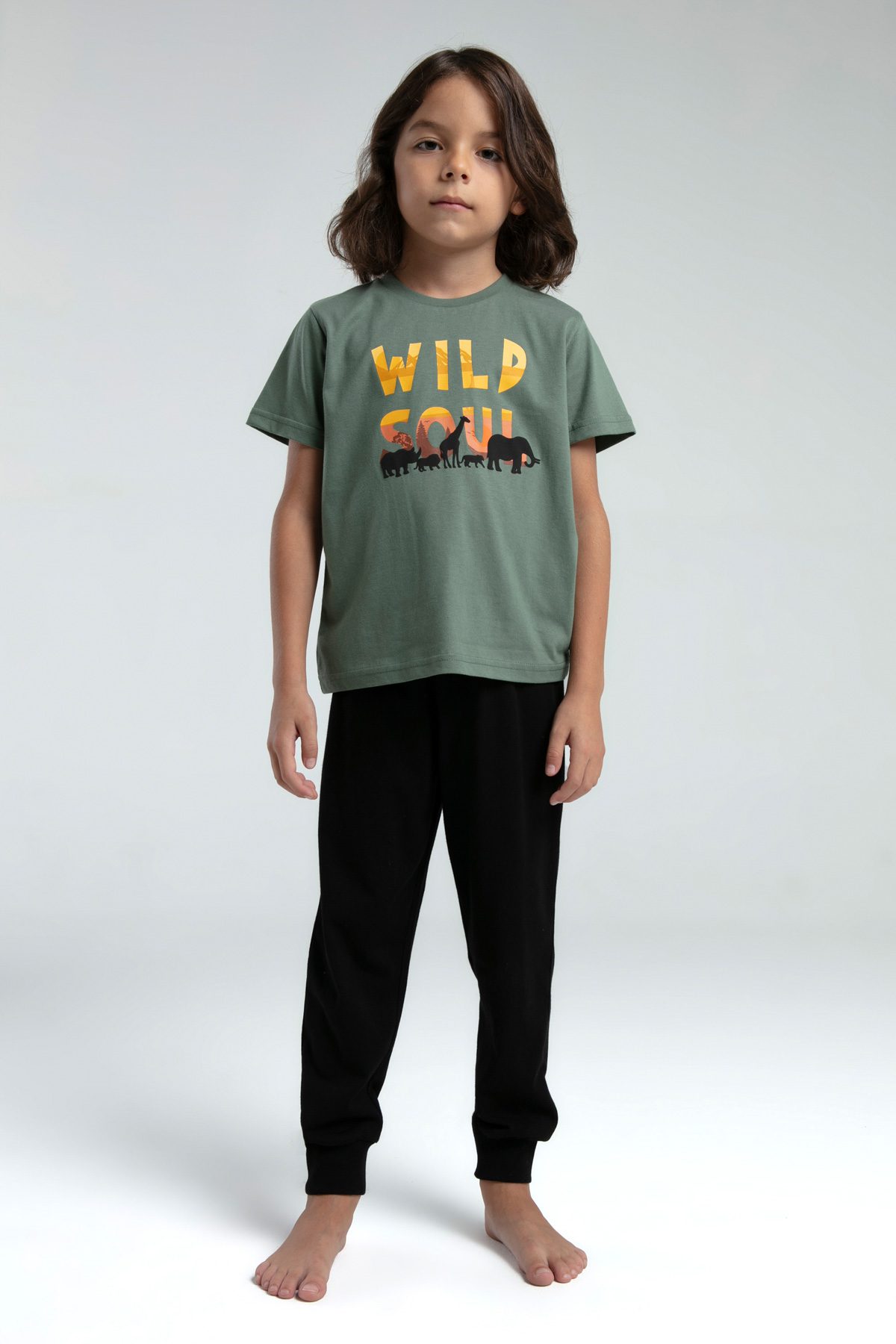 RP3540 طقم بيجاما قطن قطعتين للاولاد لون اسود