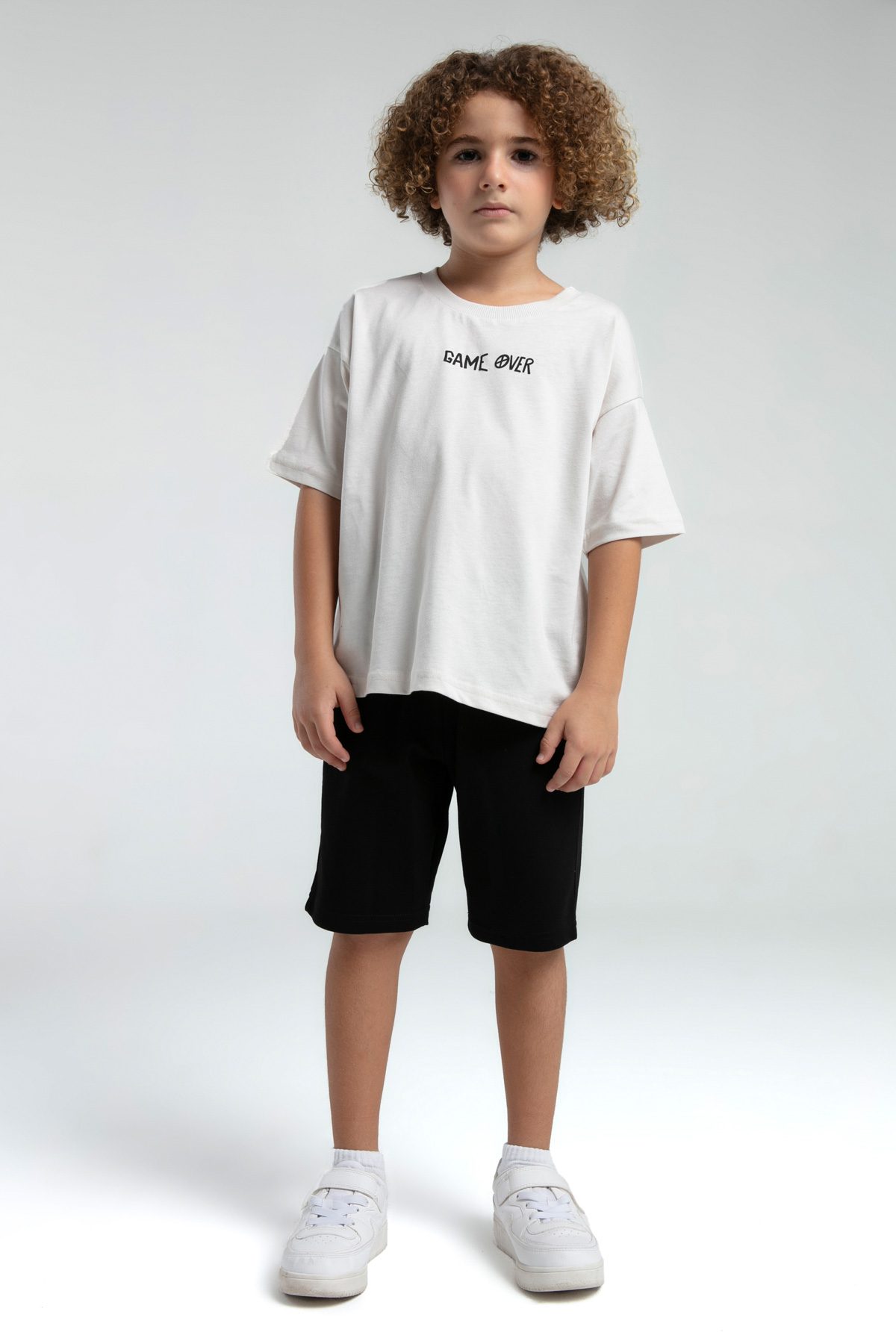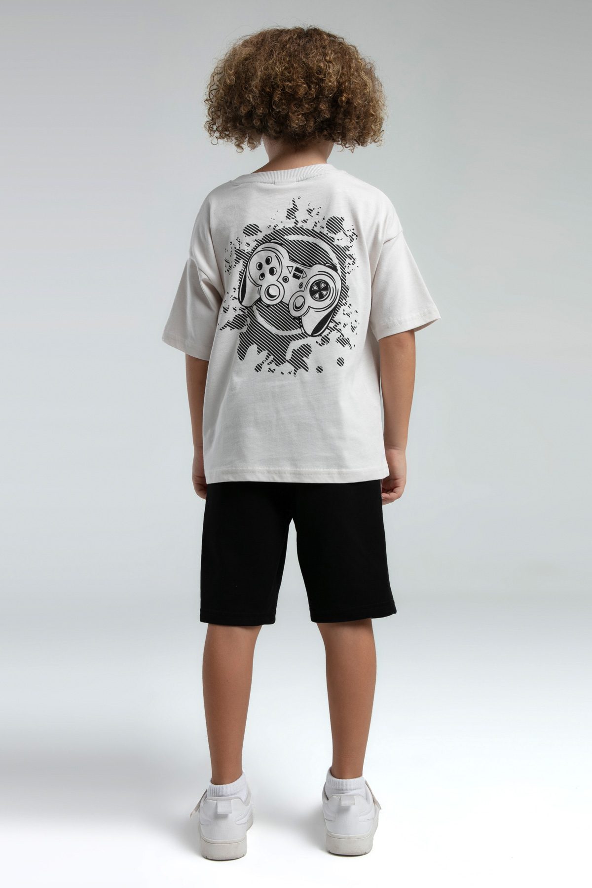 RP3572 طقم شورت للاولاد قطن قطعتين بلوز لون كريمي مع شورت لون اسود
