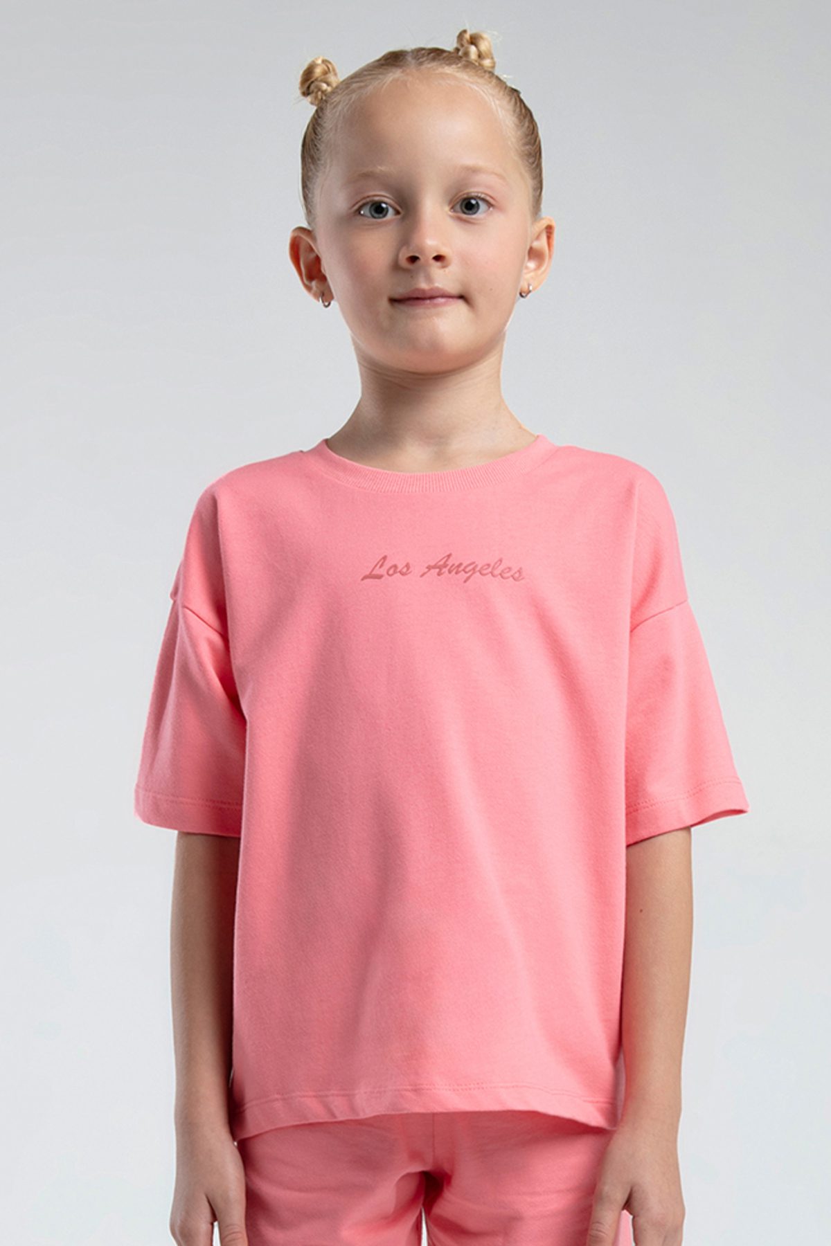RP3590 طقم برمودا للفتيات قطن ثلاثة خيط لون وردي