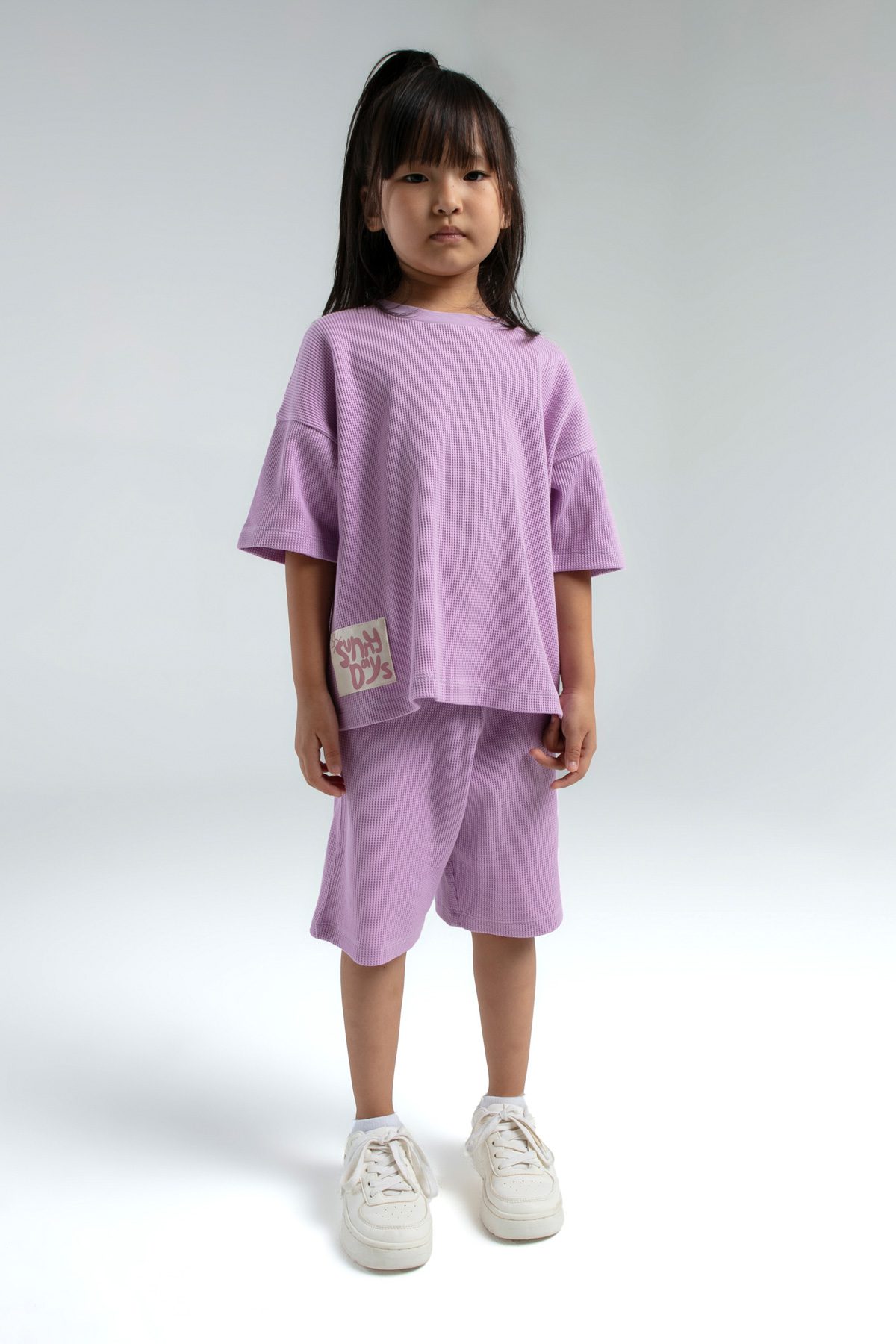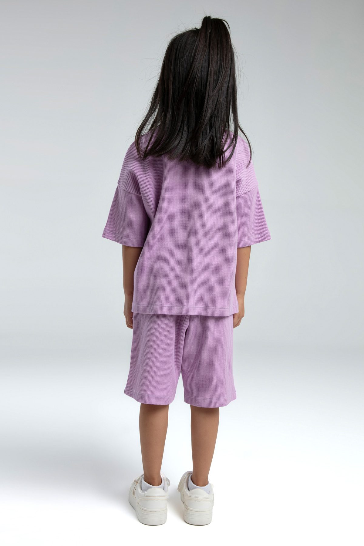 RP3590 طقم برمودا للفتيات قطن ثلاثة خيط لون ليلكي