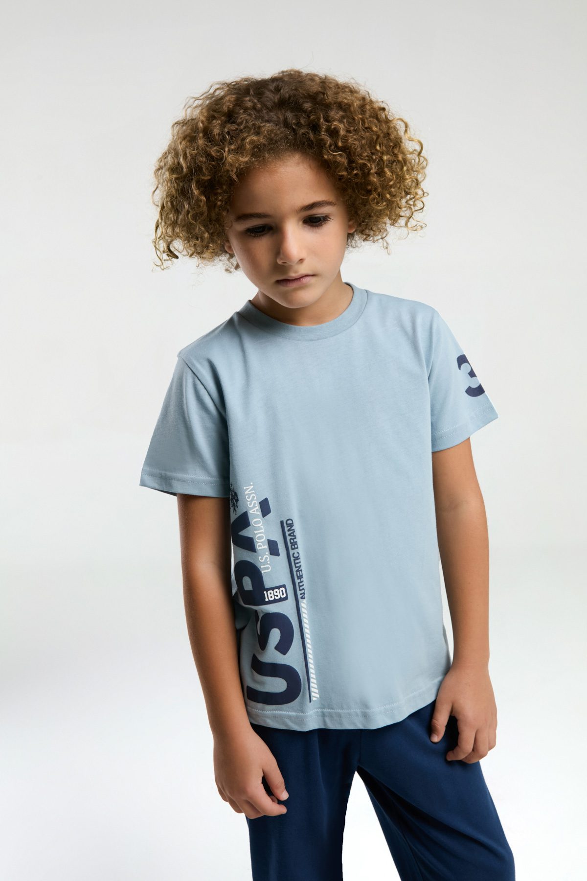 US2022 US POLO ASSN تريننج قطن ثلاثة خيط للاولاد لون ازرق