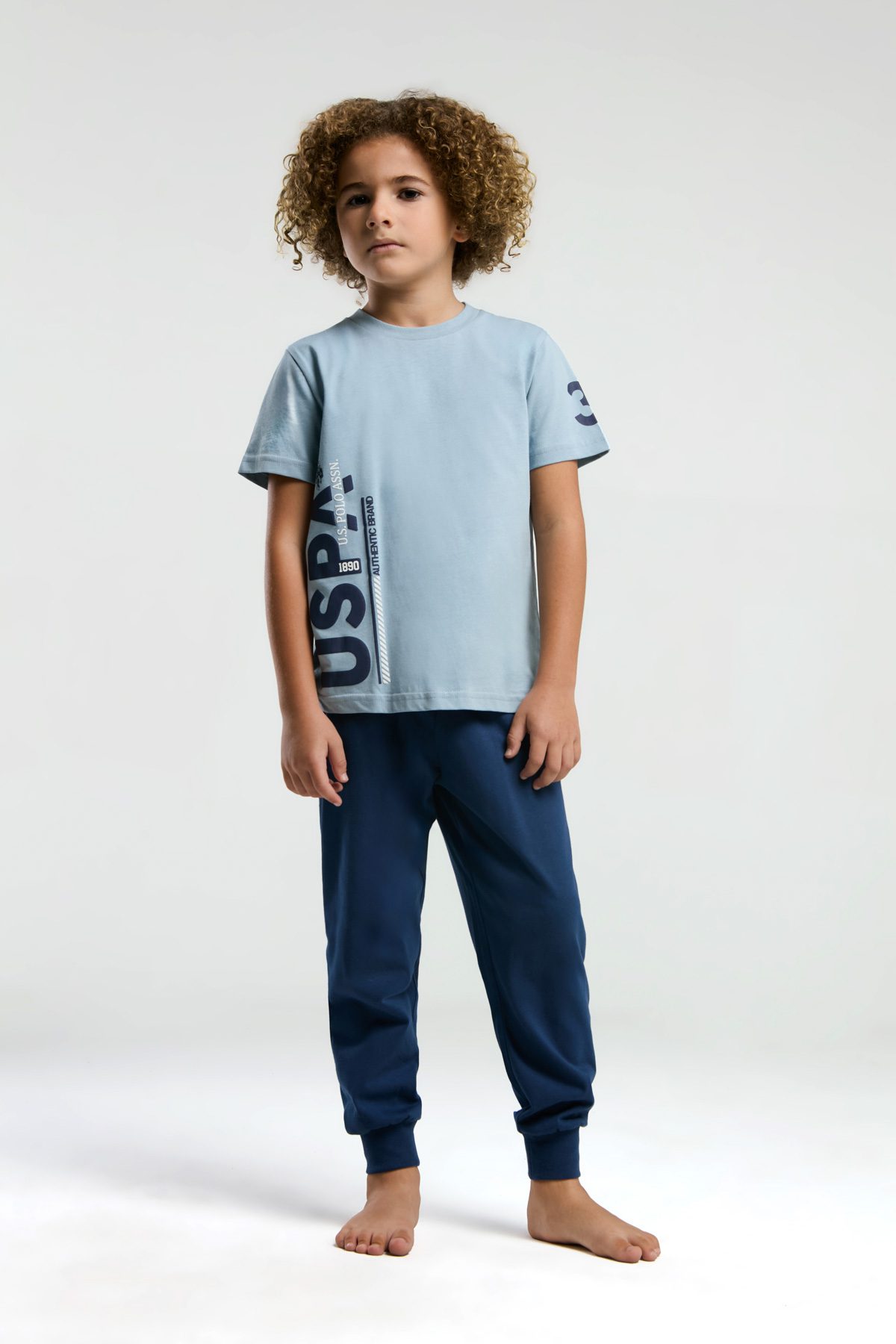 US2013 US POLO ASSN طقم بيجاما قطن قطعتين للاولاد بلوز لون ازرق