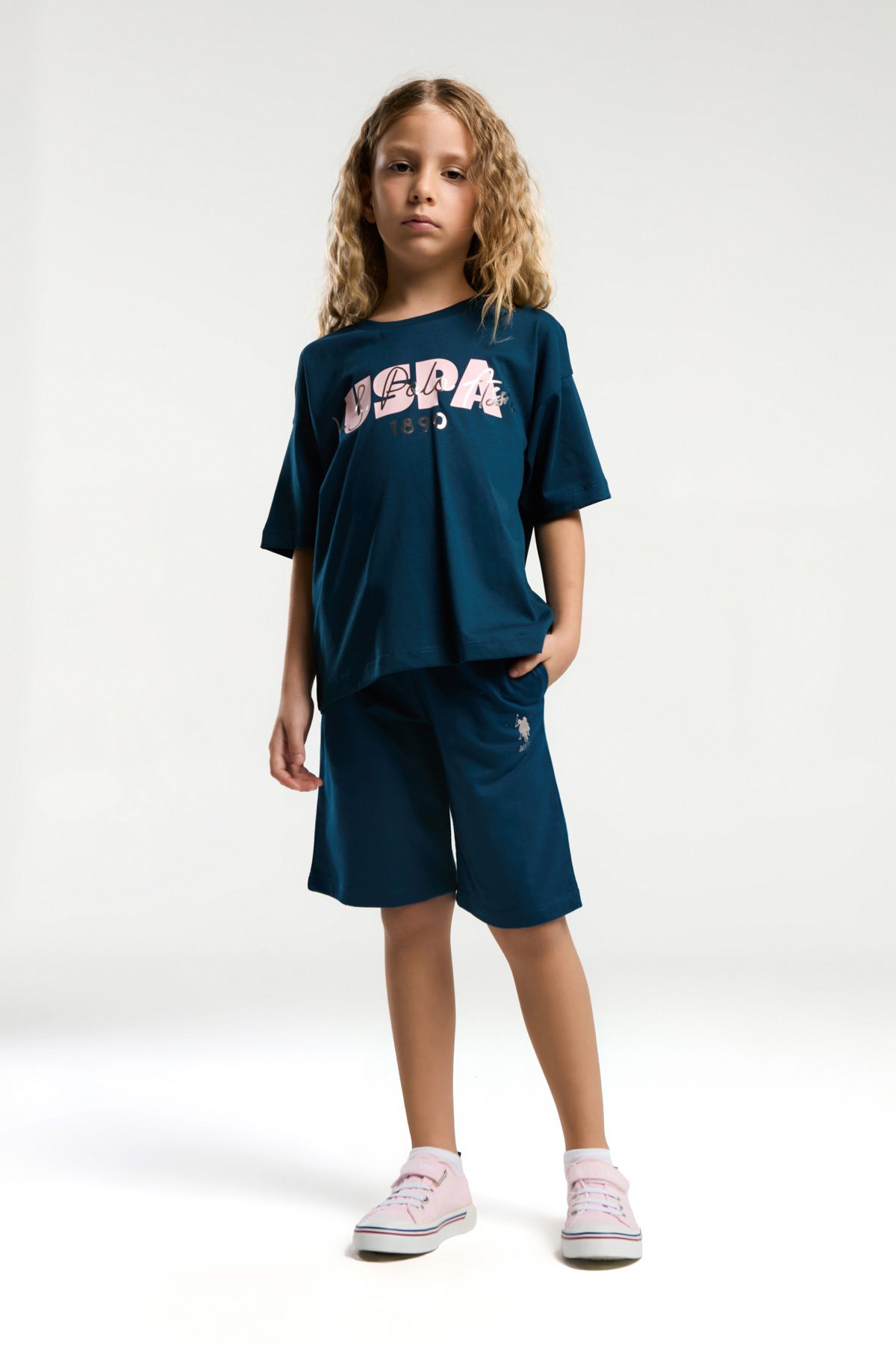 US2070 US POLO ASSNطقم للفتيات برمودا قطن