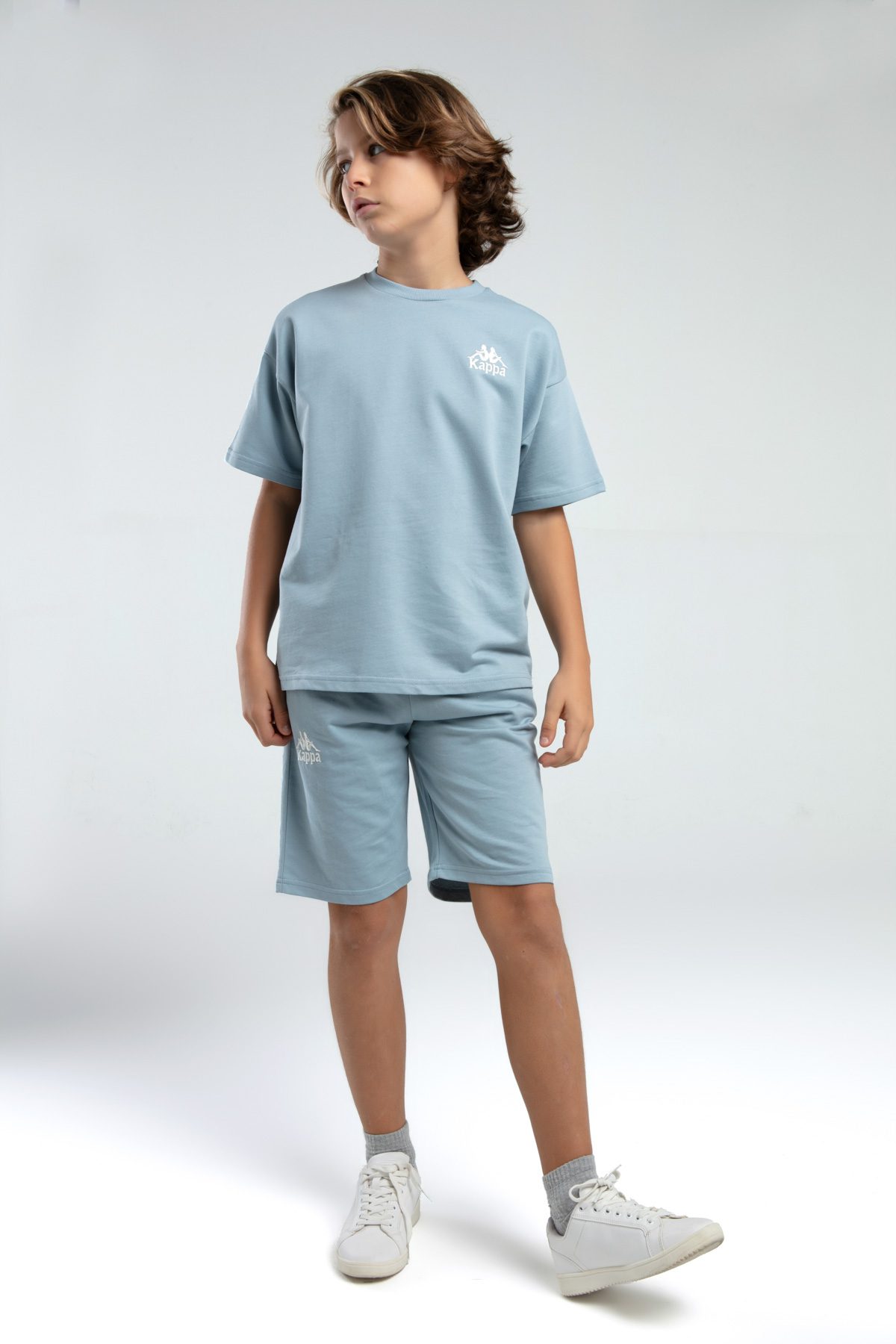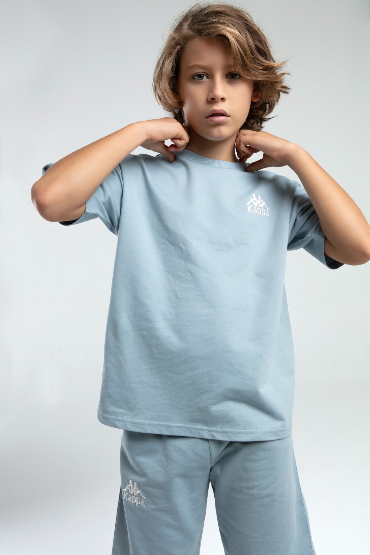 36225JW KAPPA BRAND تريننج شورت للاولاد قطن قطعتين لون ازرق سماوي
