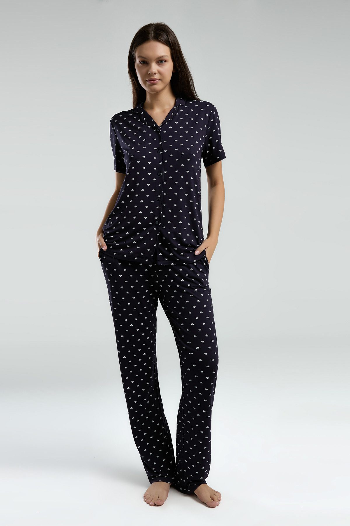 AR3226-S طقم بيجاما للنساء قطعتين لون كحلي
