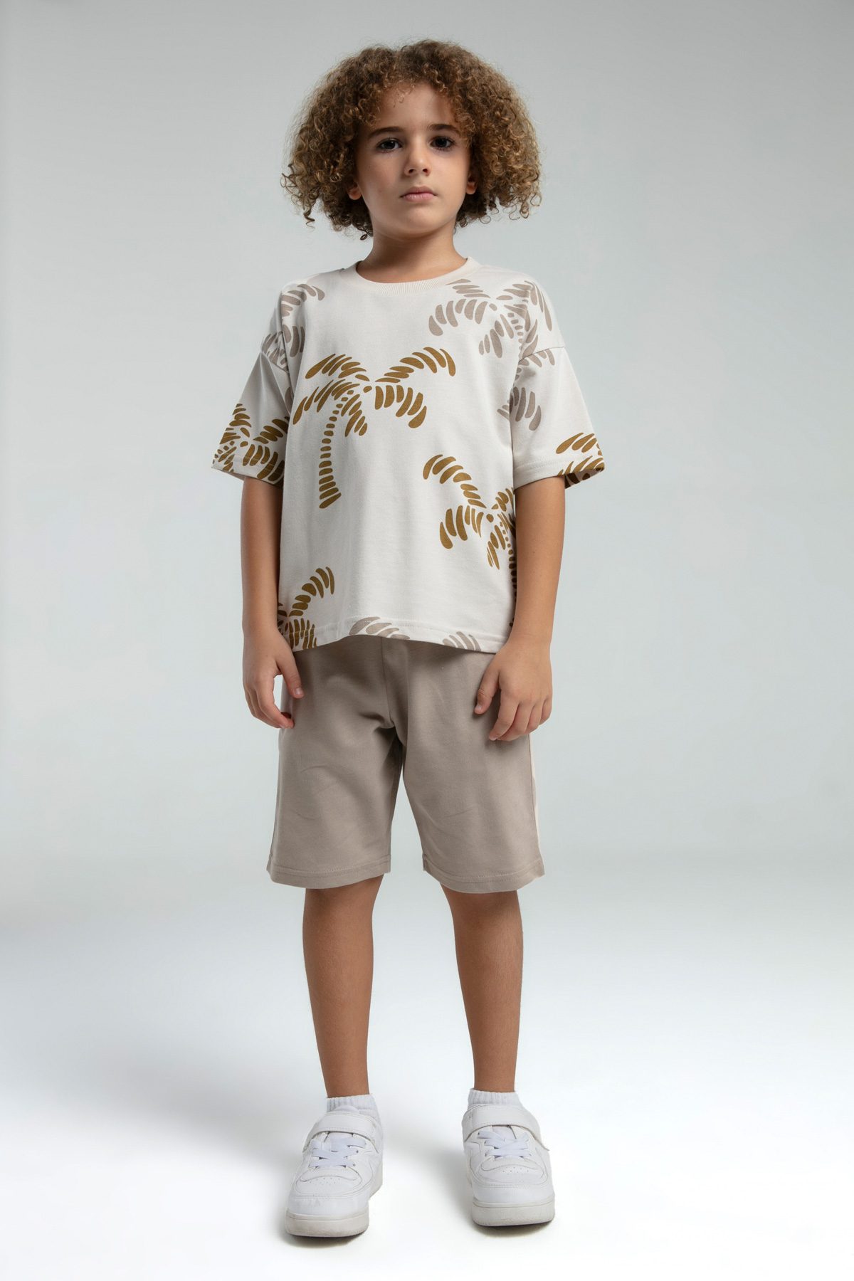RP3573 طقم شورت للاولاد قطن قطعتين لون بيج