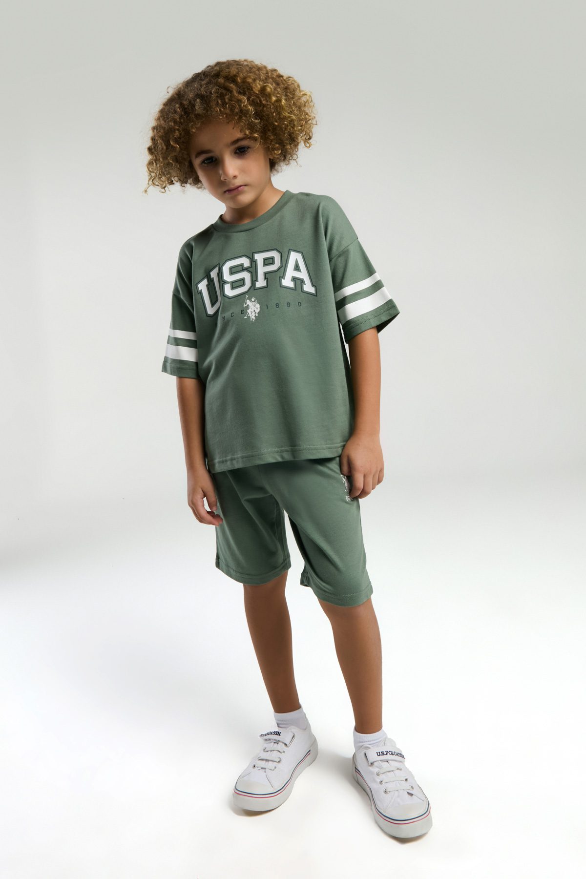 US1313 US POLO ASSN تريننج شورت لون فستقي للاولاد قطعتين قطن