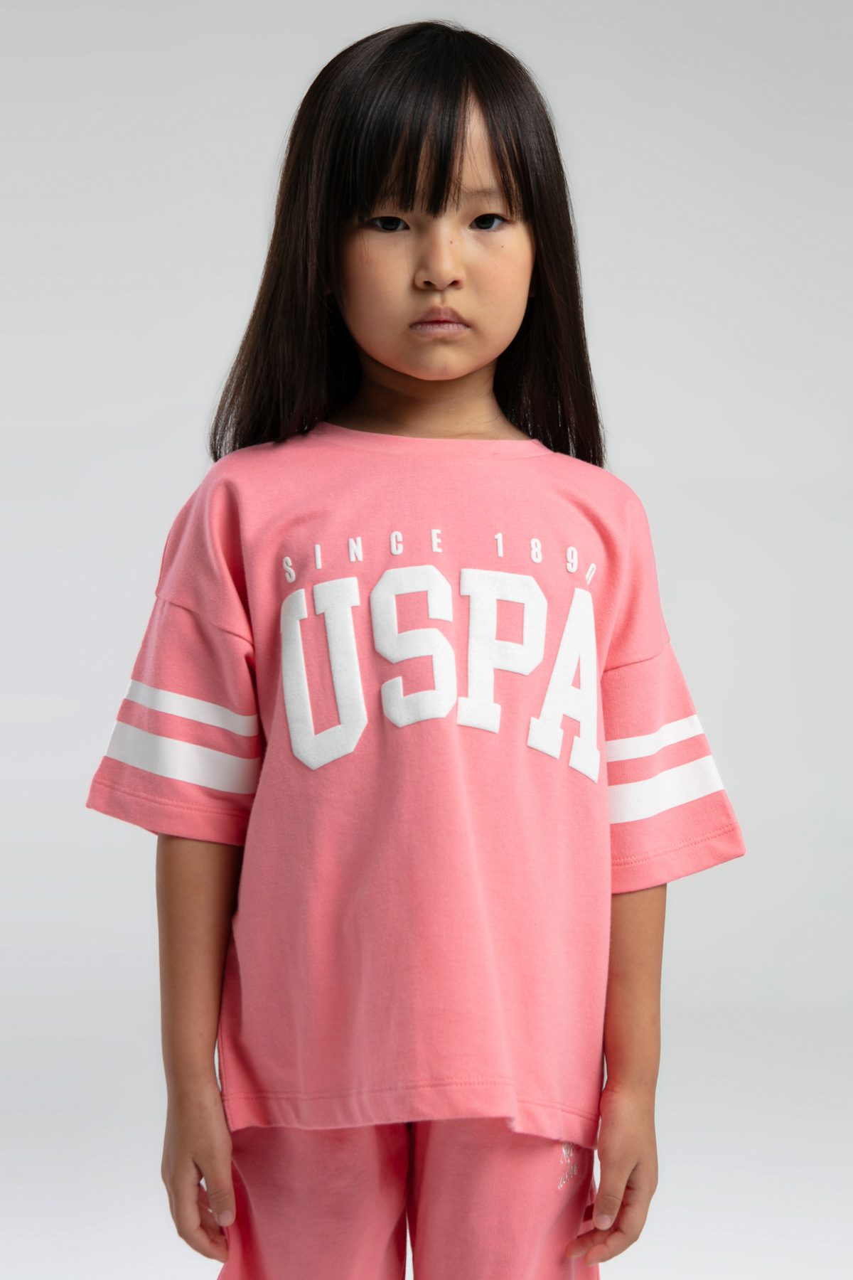US2074 US POLO ASSN طقم للبنات قطن شورت قطعتين لون زهري