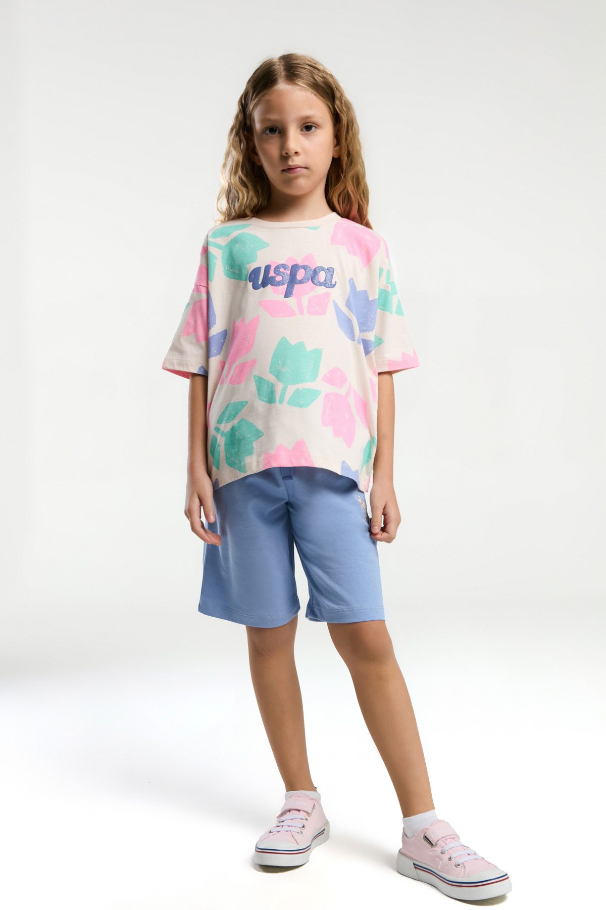 US2091 US POLO ASSN طقم للفتيات بنطال برمودا قطن