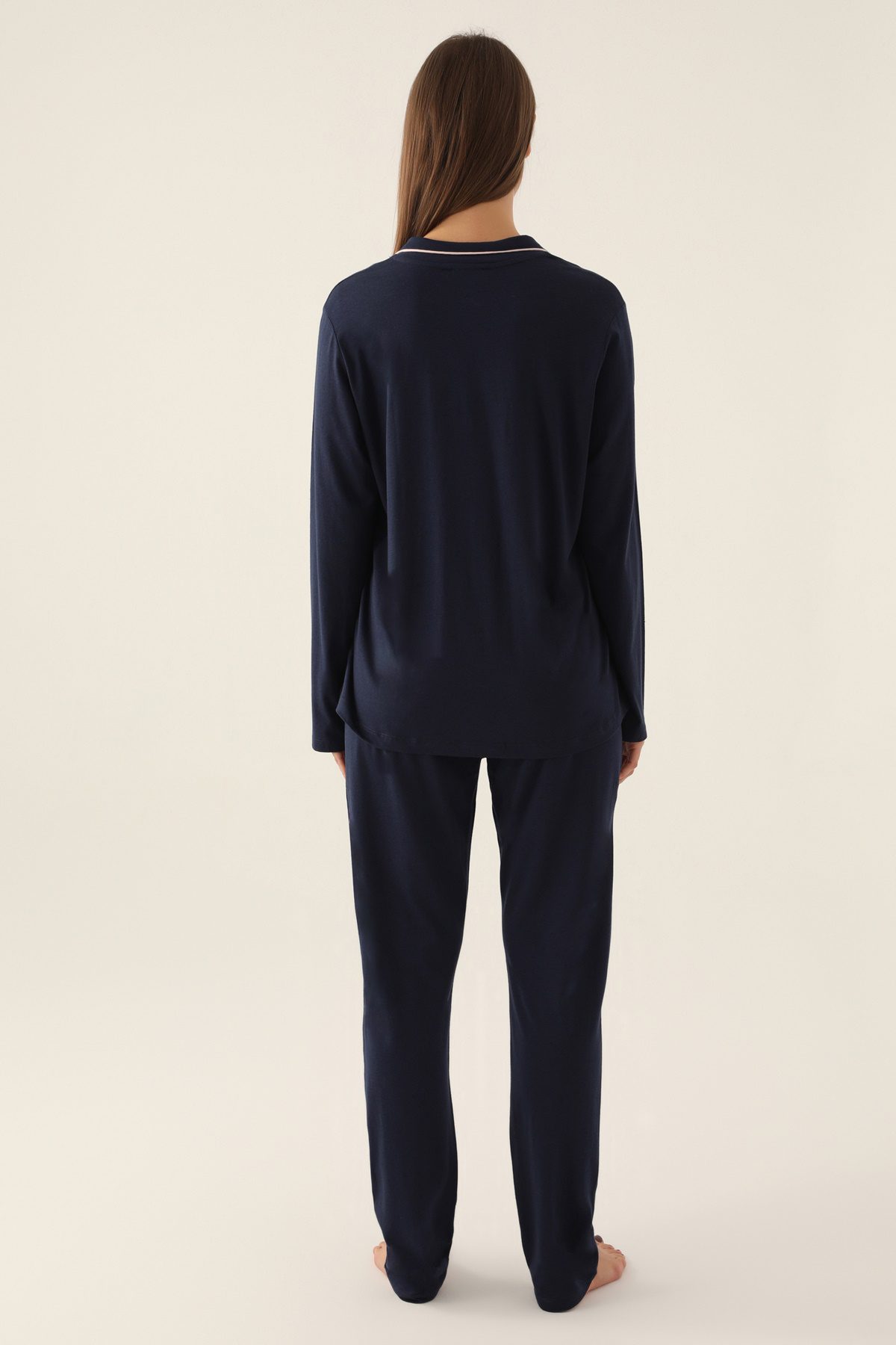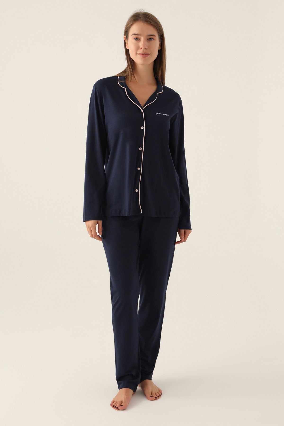 PC7717-S PIERRE CARDIN طقم بيجاما بأزرار لون كحلي قطن