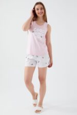 PC8572-S PIERRE CARDINطقم شورت للنساء قطعتين قطن لون زهري