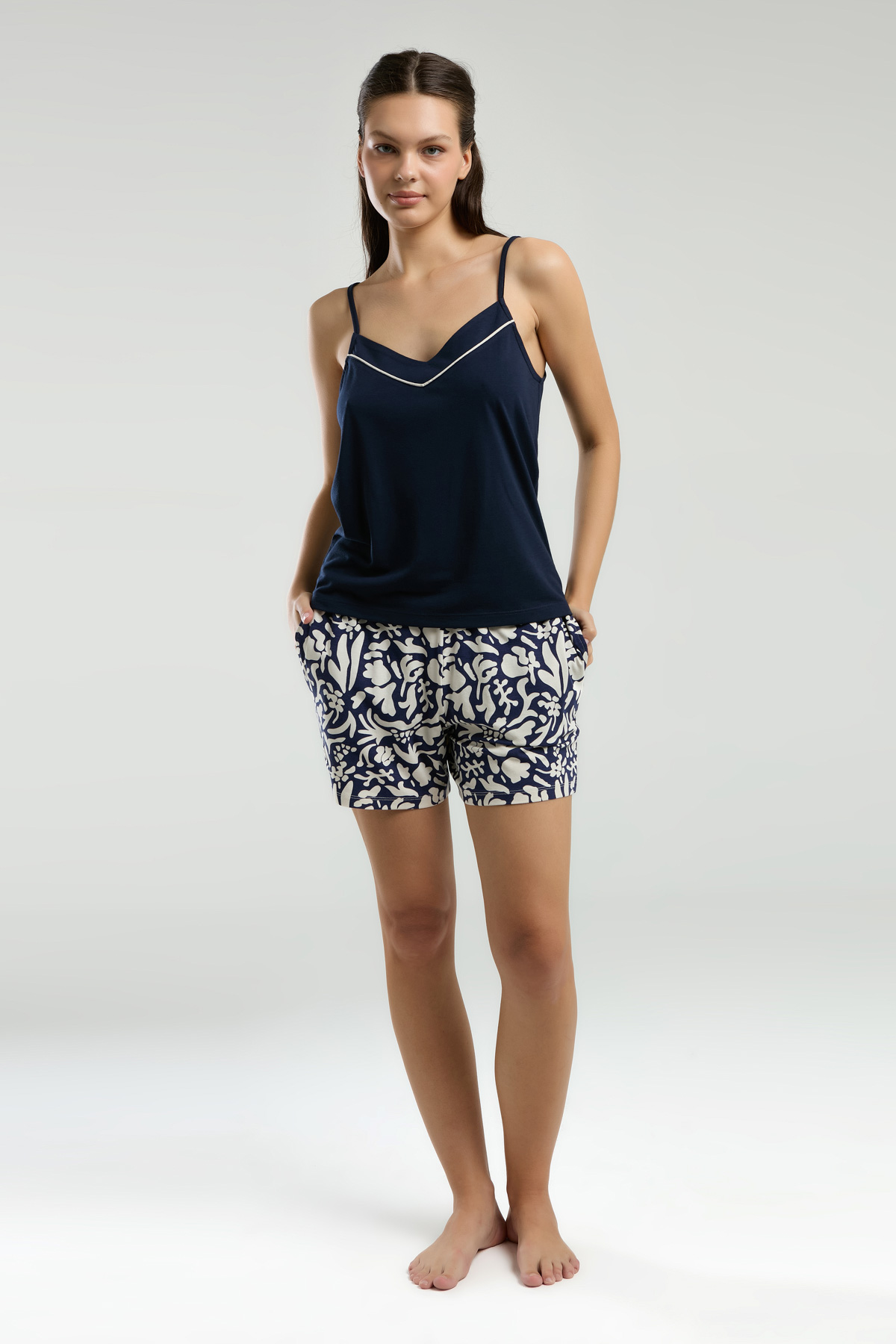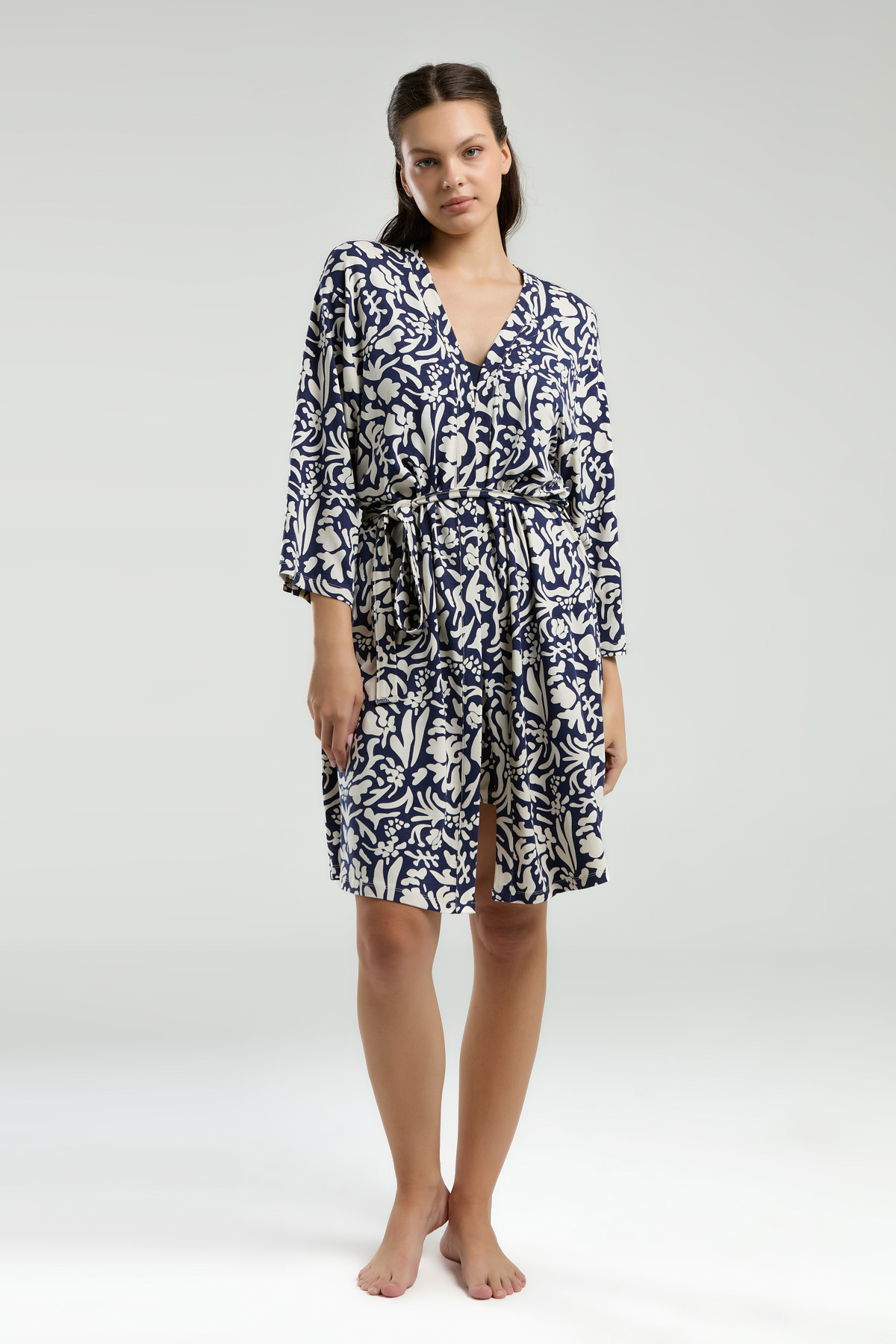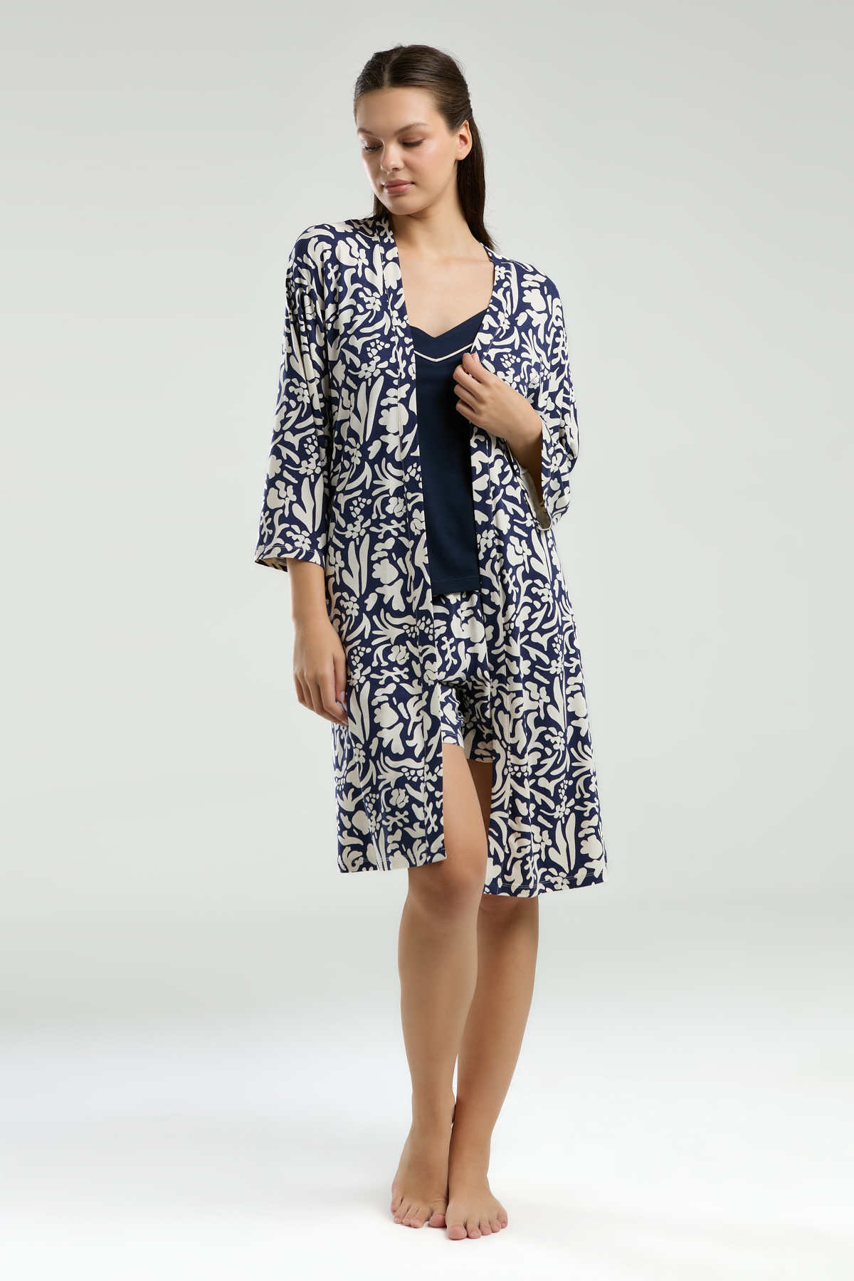 PC8975-S Pierre Cardin طقم شورت مع روب قطن ثلاث قطع للنساء