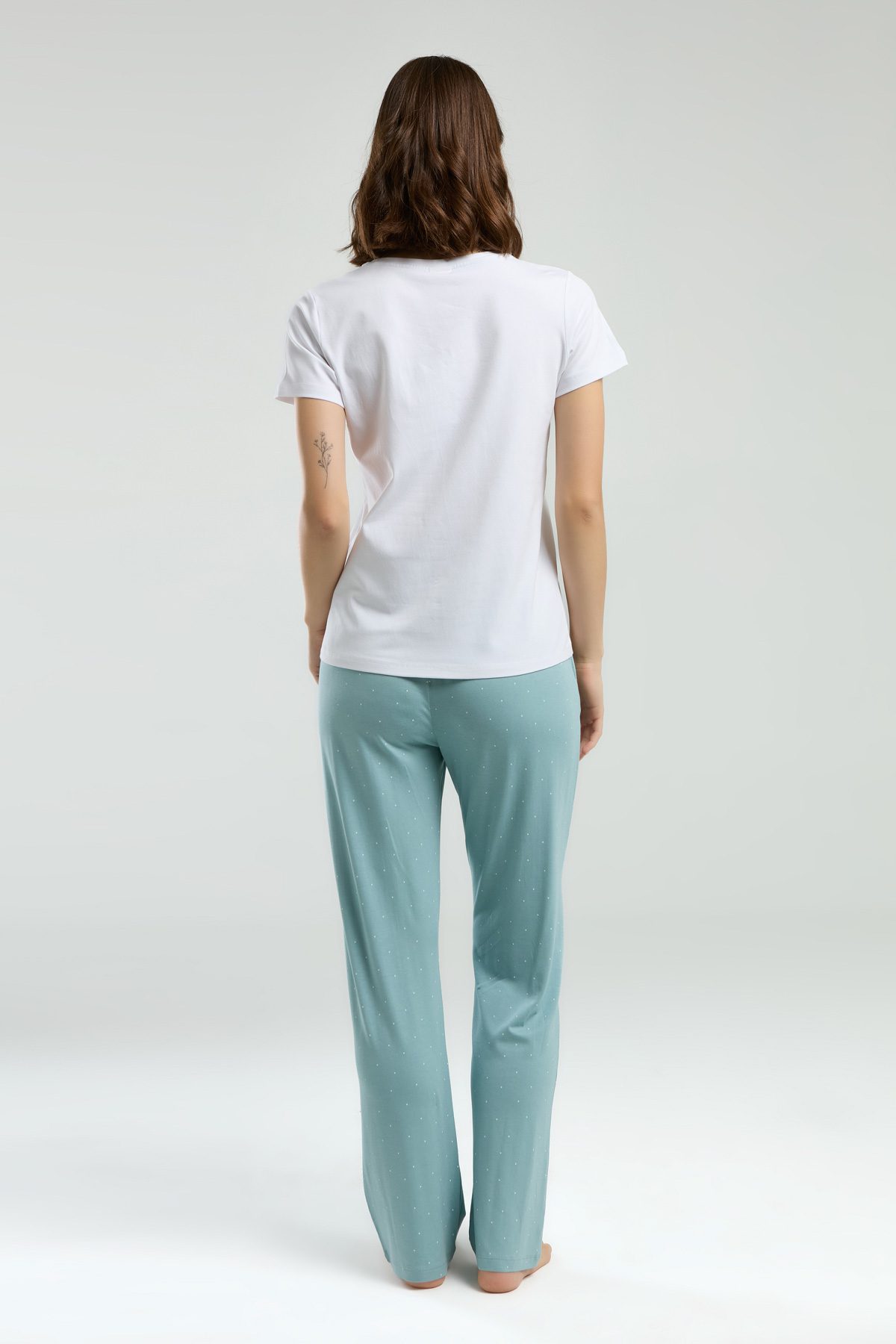 PC8983 PIERRE CARDIN طقم بيجاما قطن للنساء قطعتين بلوز لون ابيض مع بنطال لون فيروزي