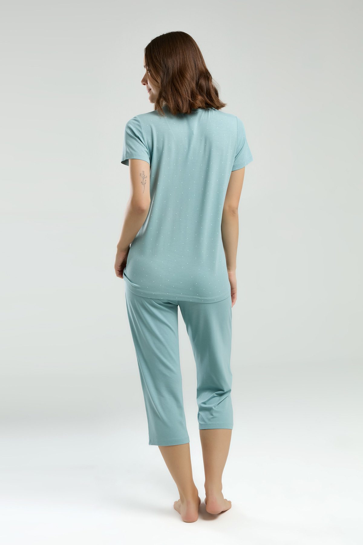 PC8984 PIERRE CARDIN طقم بيجاما قطن للنساء قطعتين برمودا لون فيروزي