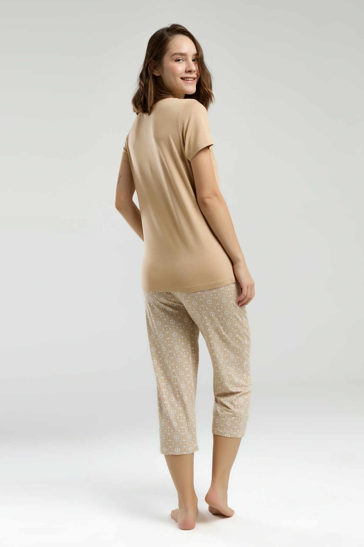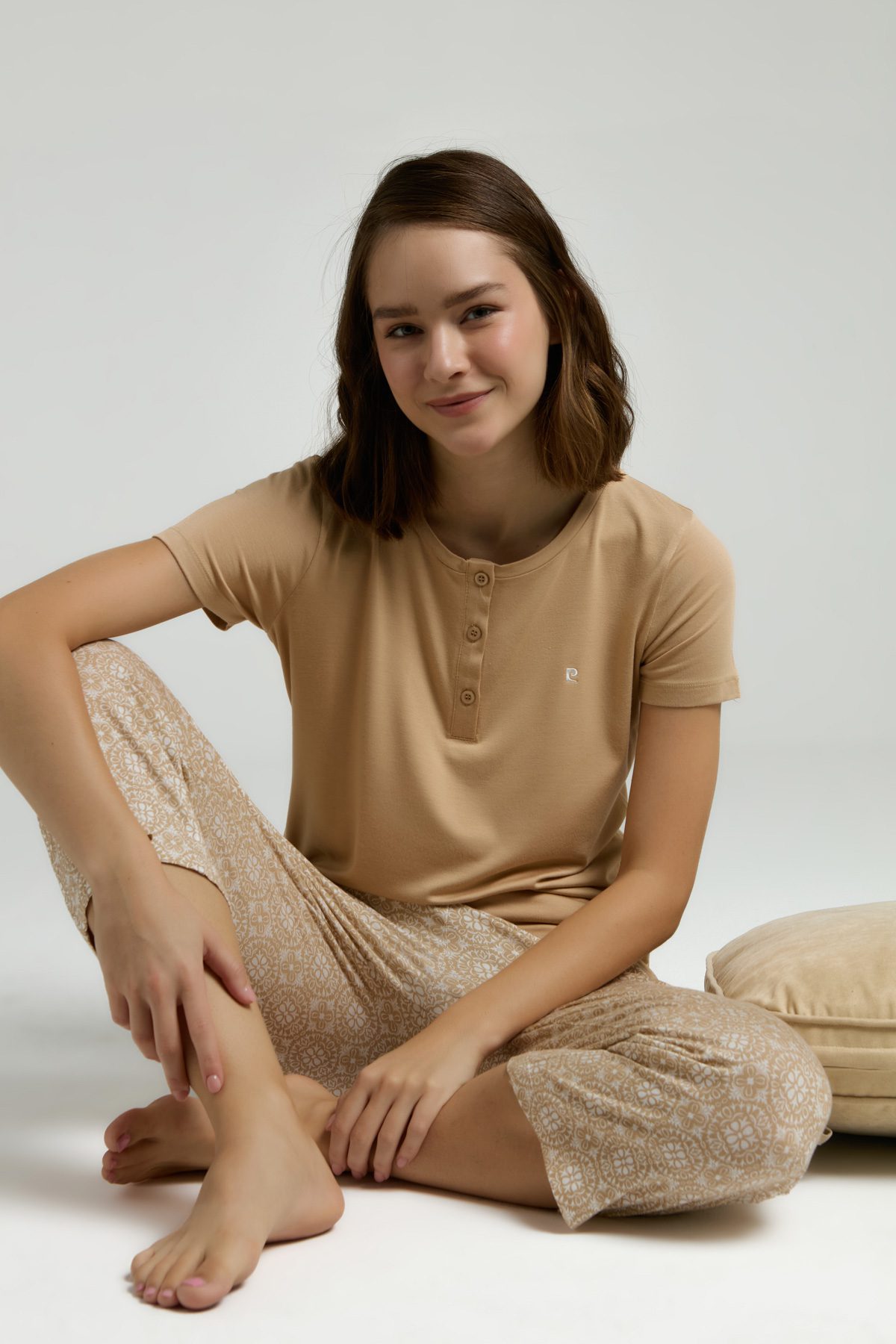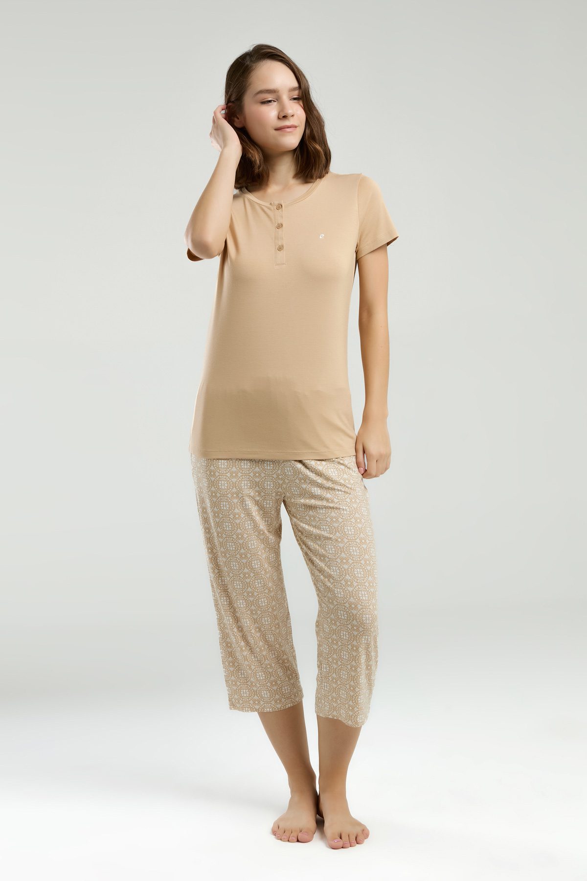 PC9002 PIERRE CARDIN طقم بيجاما للنساء برمودا قطعتين لون رملي