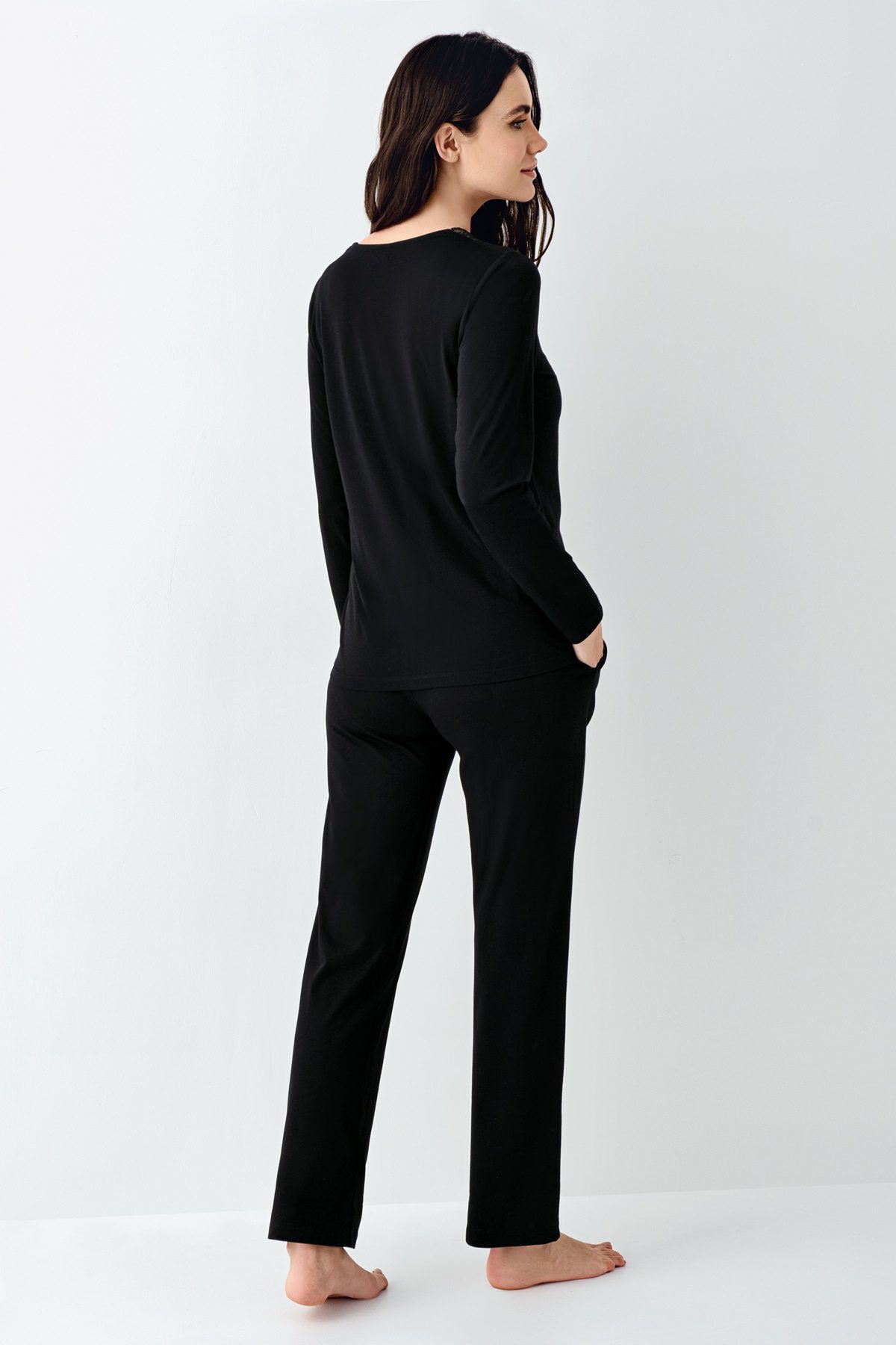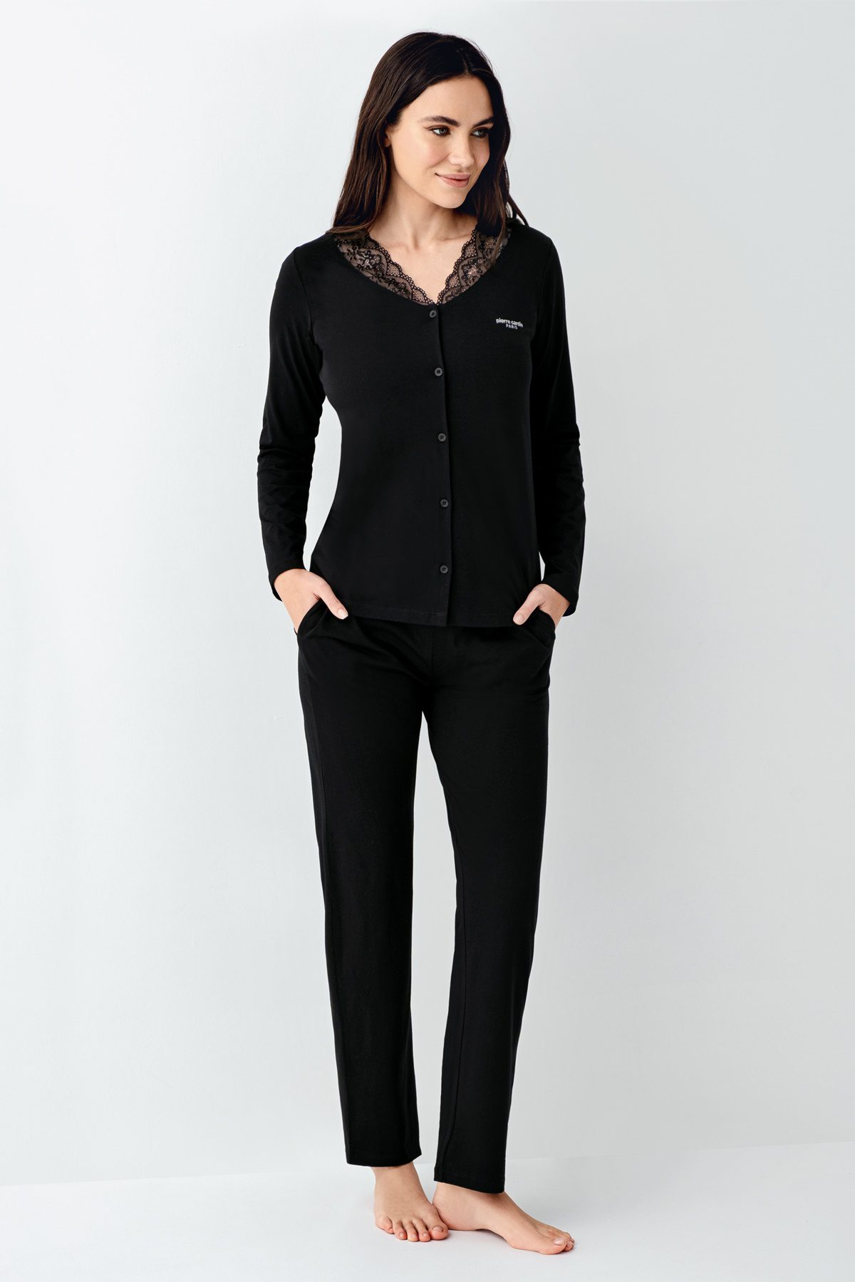 PC9116-S PIERRE CARDIN طقم بيجاما بأزرار لون اسود قطن